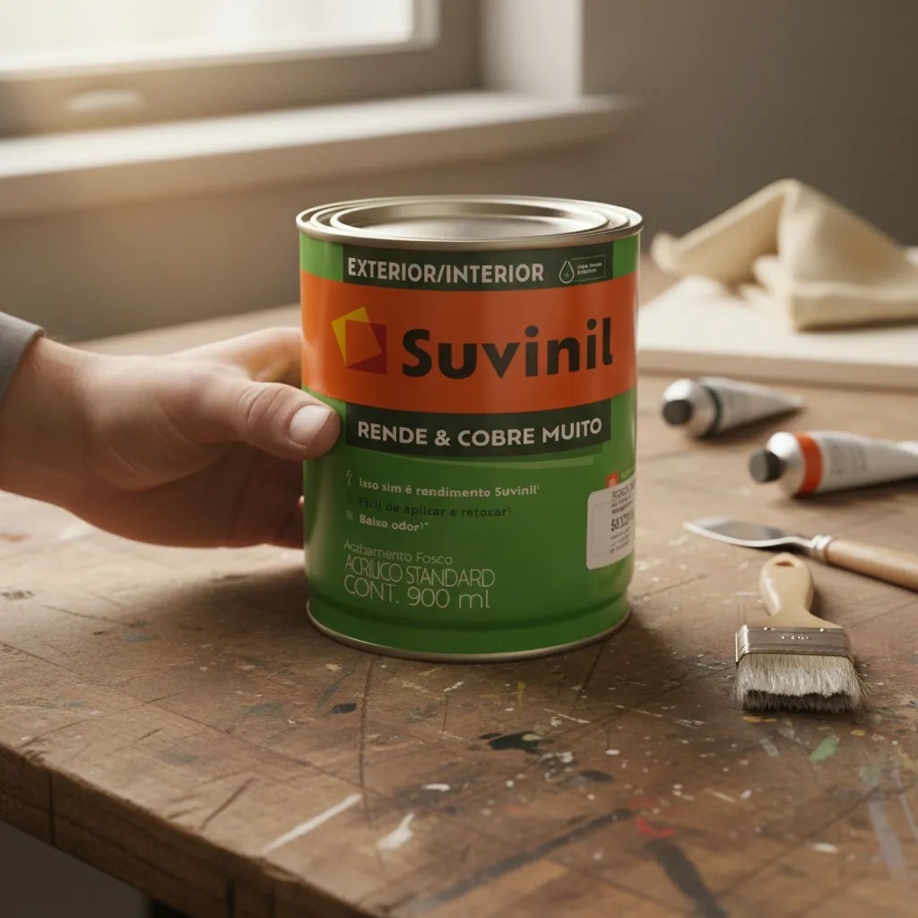 TINTA ACRÍLICA PAREDE ANTIMOFO FOSCO BRANCO 0,9 LITROS RENDE E COBRE MUITO SUVINIL