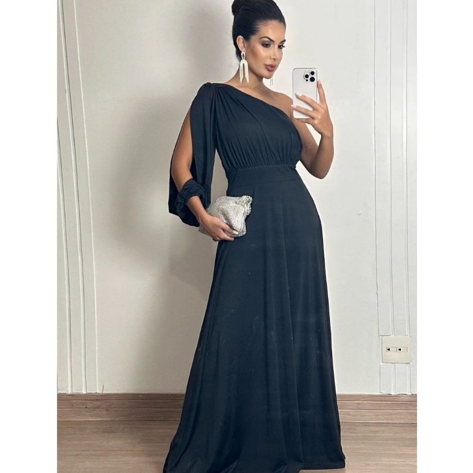 CRISTINA ANAIRVESTIDO SOCIAL LONGO ELEGANTE NULA MANGA CASAMENTO FESTA