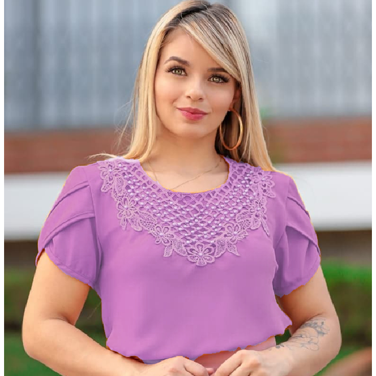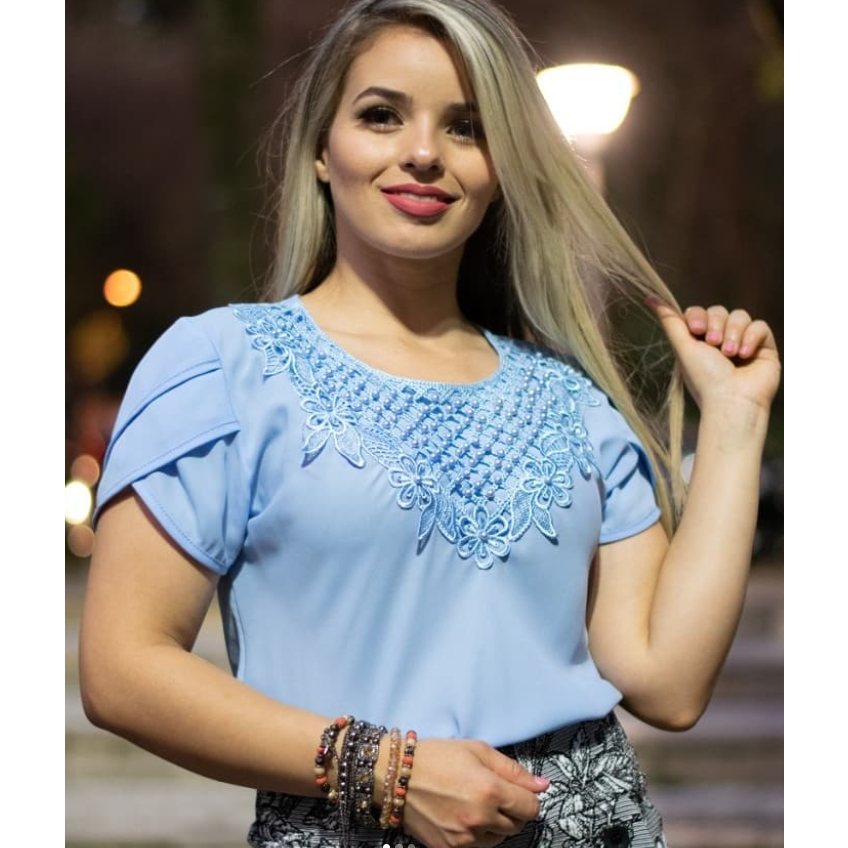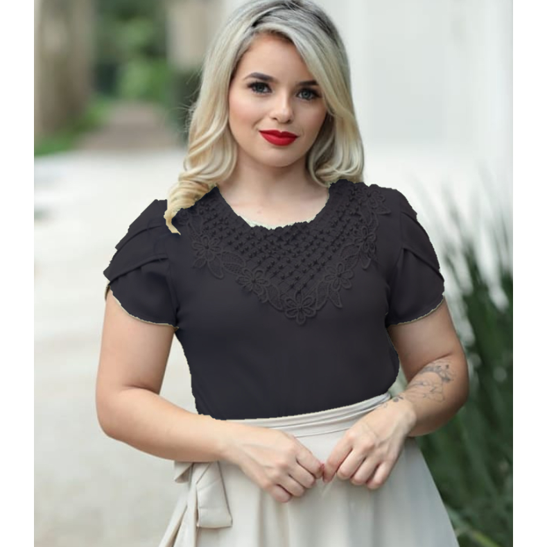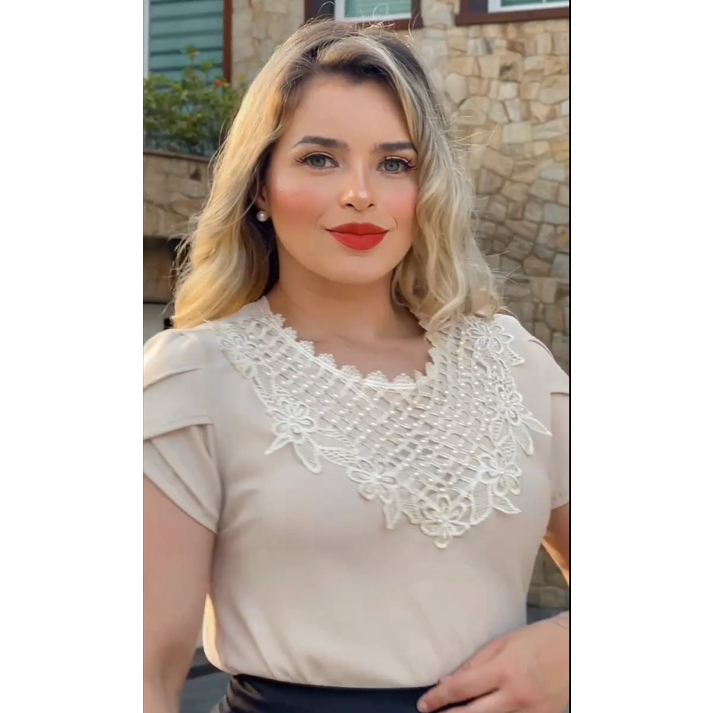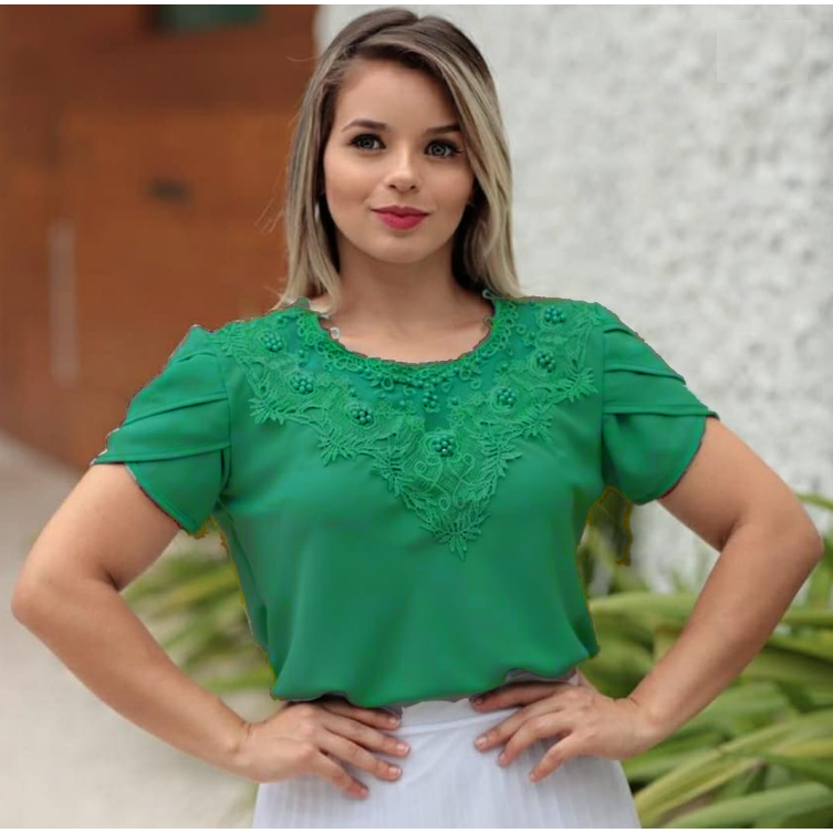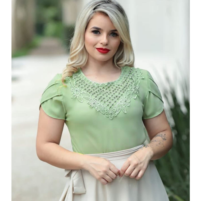 Blusa Camisa Verde Oliva Menta Manga Curta Renda Social Feminina Evangélica Cristã Social Bordada Congresso Romântica