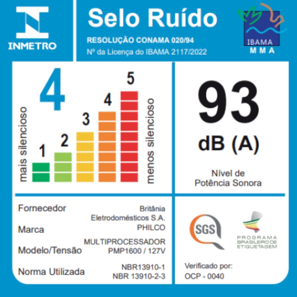 Multiprocessador Philco PMP1600 2 Velocidades + Pulsar 1700W