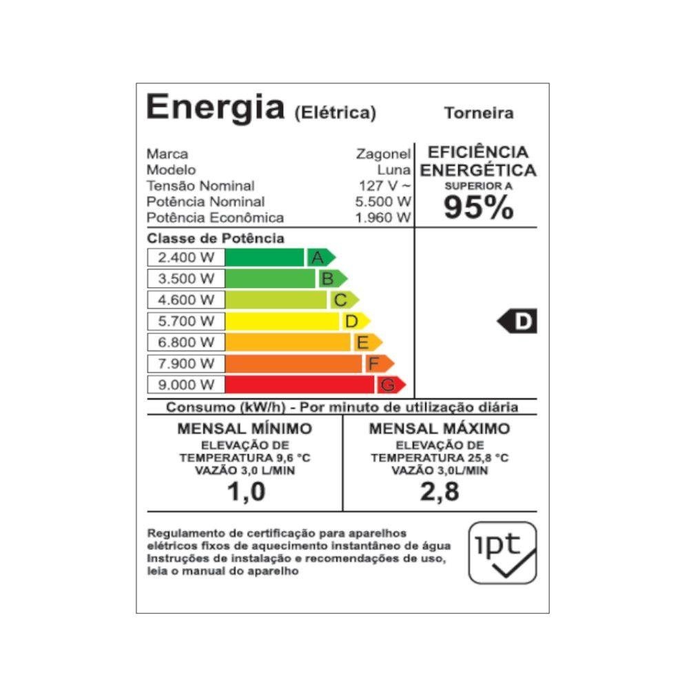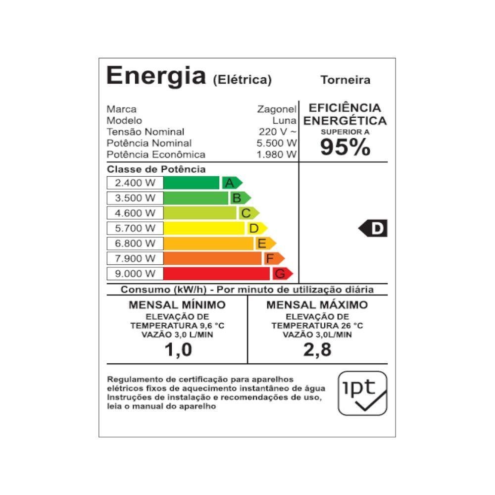 Torneira Elétrica Zagonel Luna 5500W De Parede 4 Temperaturas