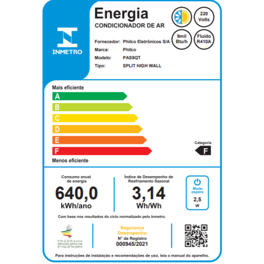 Ar Condicionado Split Philco 9000Btus Quente e Frio PAC9000TQFM12/PAS9QT 220V