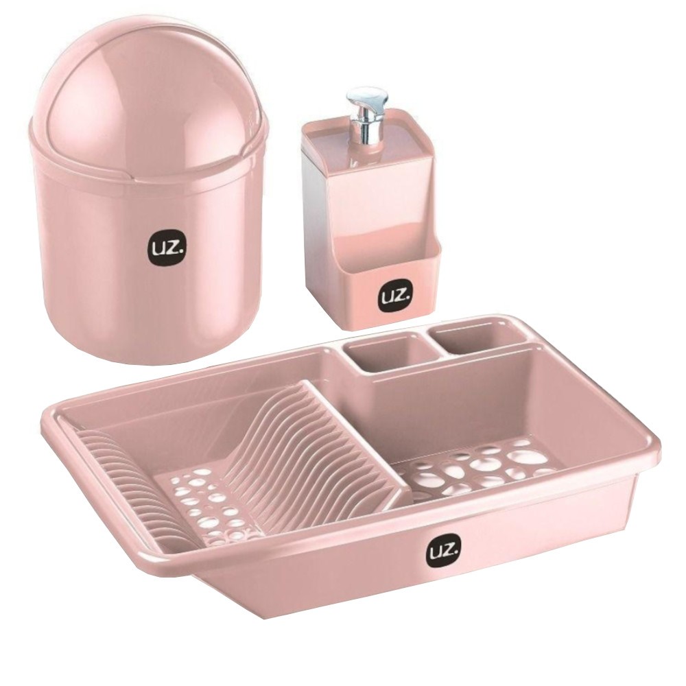 Kit Pia Multiuso de Plástico Uz Lixeira Escorredor de Louça e Dispenser