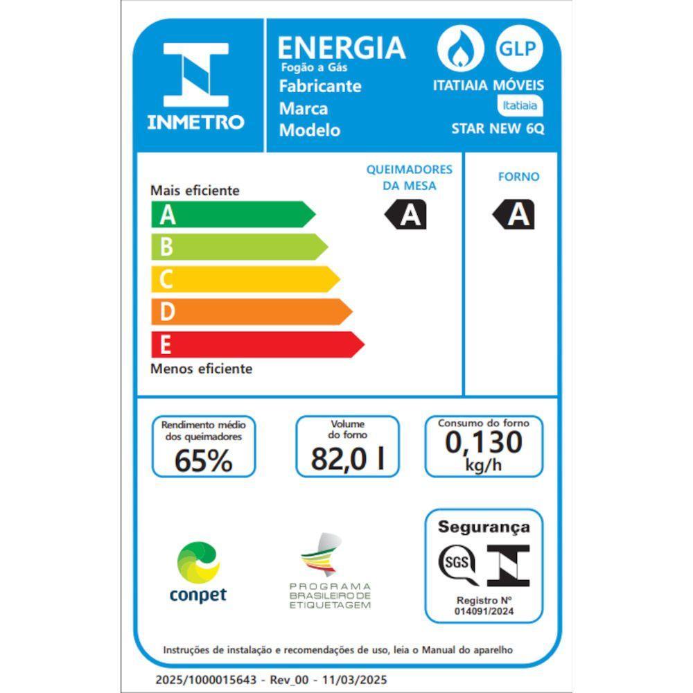 Fogão a Gás Itatiaia Star New Inox 6 Bocas Piso Bivolt