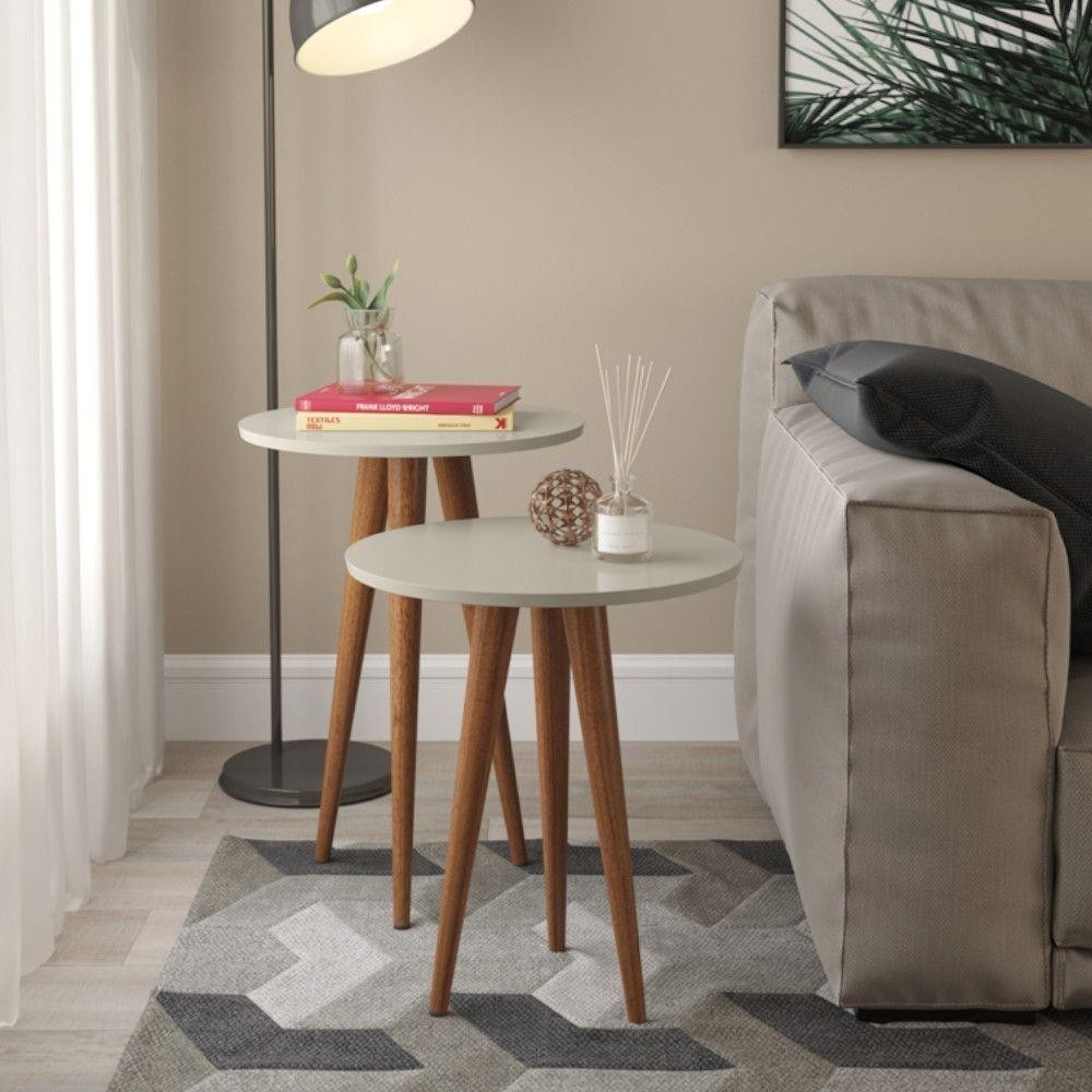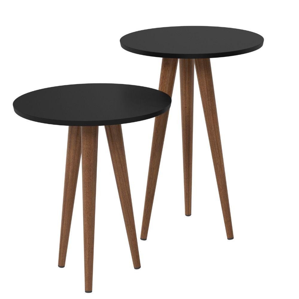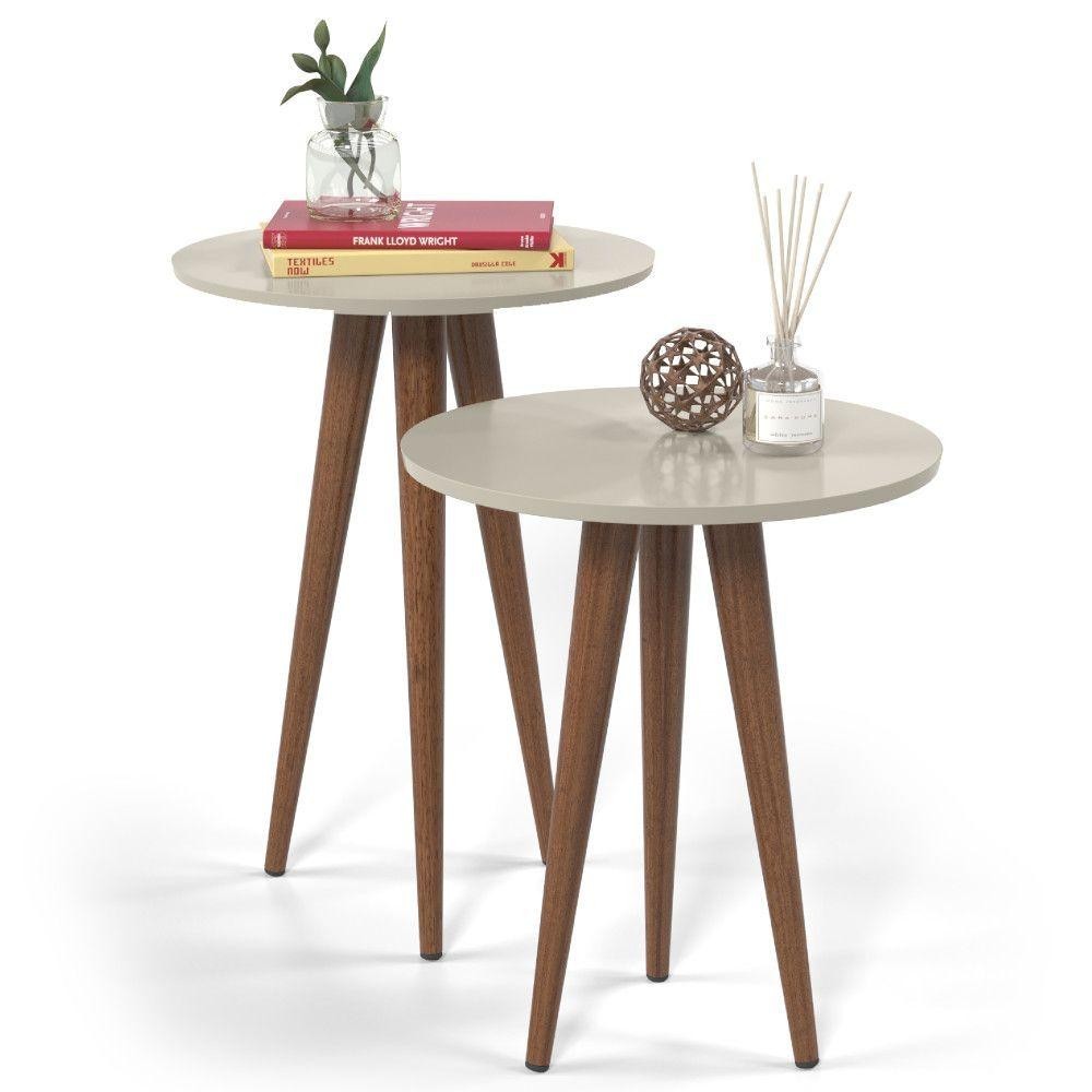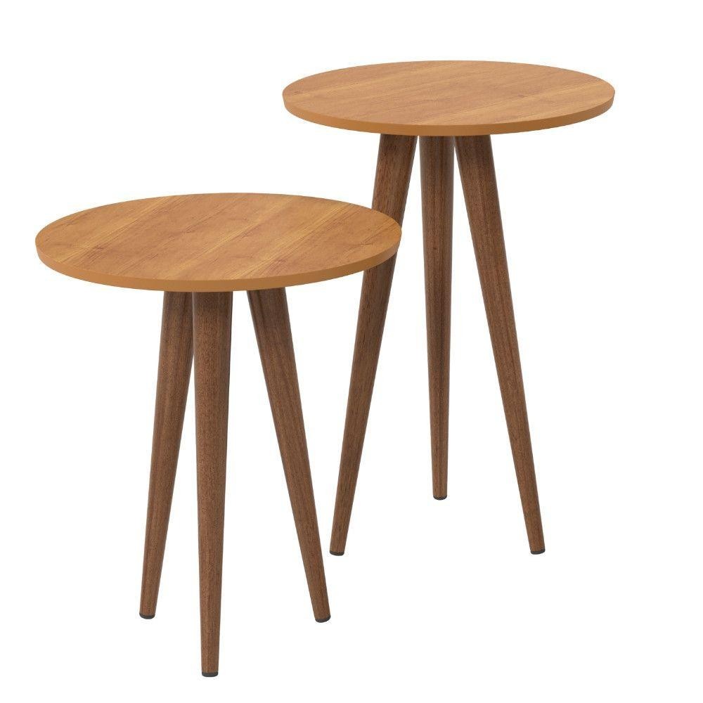 Conjunto 2 Mesas Apoio Canto e Lateral Slim Patrimar MDF Redonda
