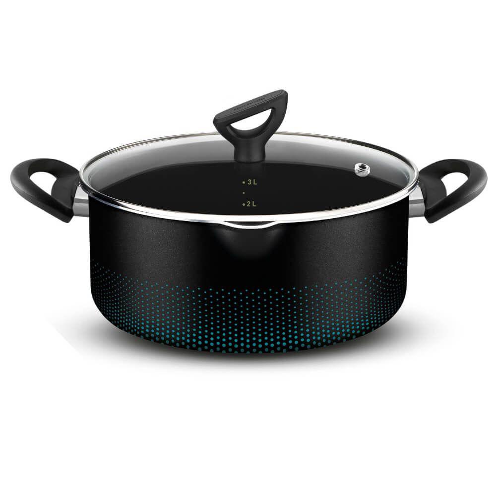 Panela de Alumínio Caçarola Rochedo 20CM diâmetro com Tampa de Vidro