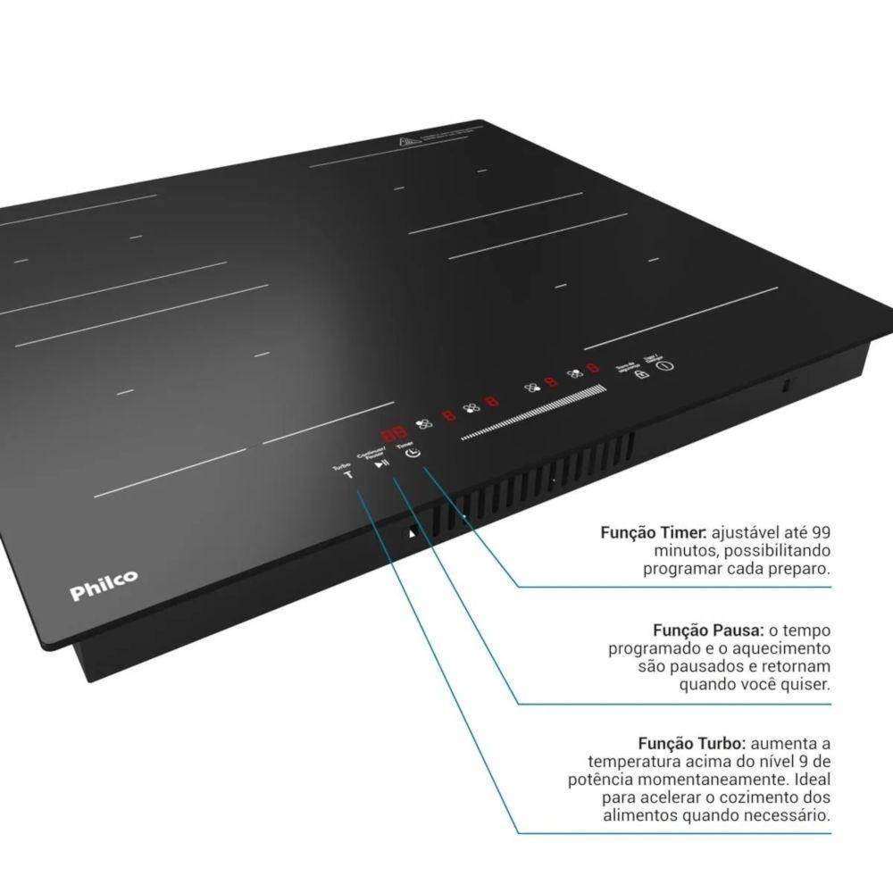 Cooktop de Indução Philco PCTQ1 4 Bocas Função Turbo