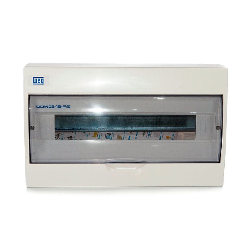 Quadro De Distribuição WEG De Sobrepor Para 4/6/8/12/18/24 Disjuntores Tampa Fumê com Trilho DIN