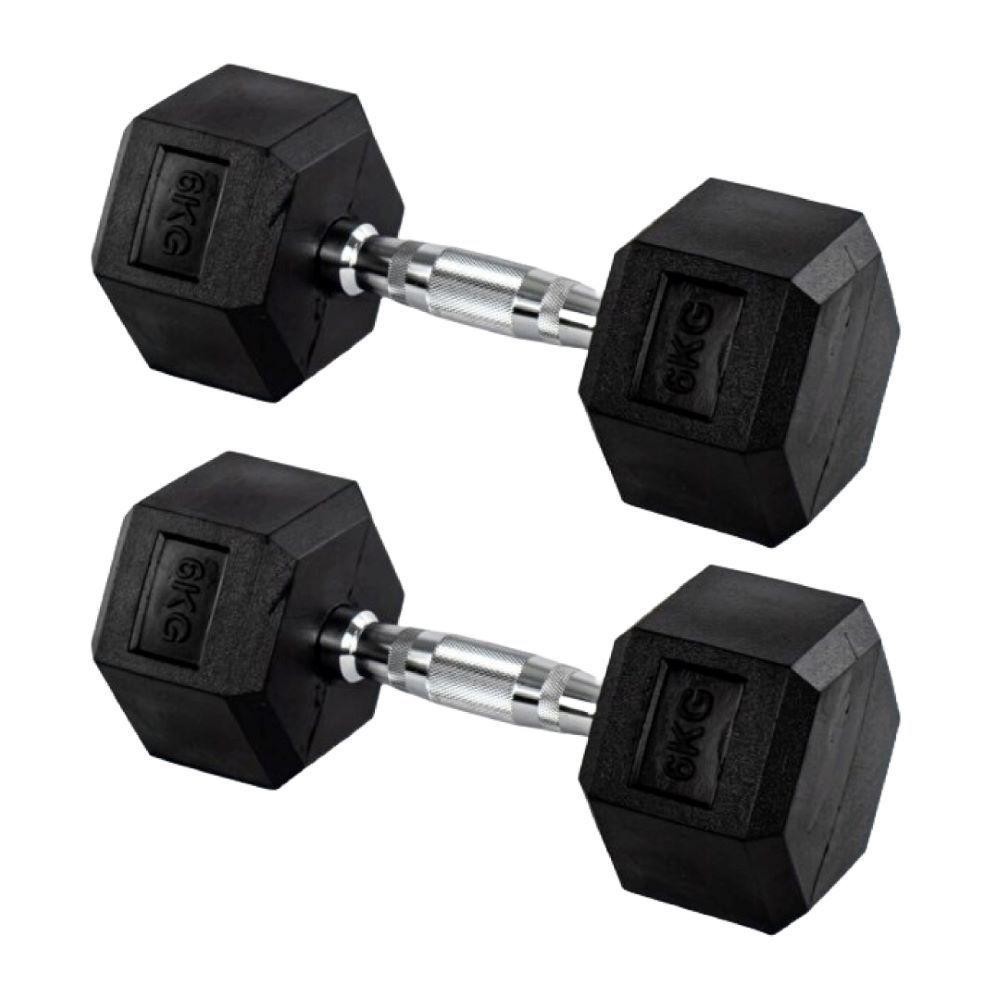 Par Halteres 6kg + 6kg Dumbbell Sextavado Emborrachado Pegada Cromada Gallant (GDb06F3B-Pt)