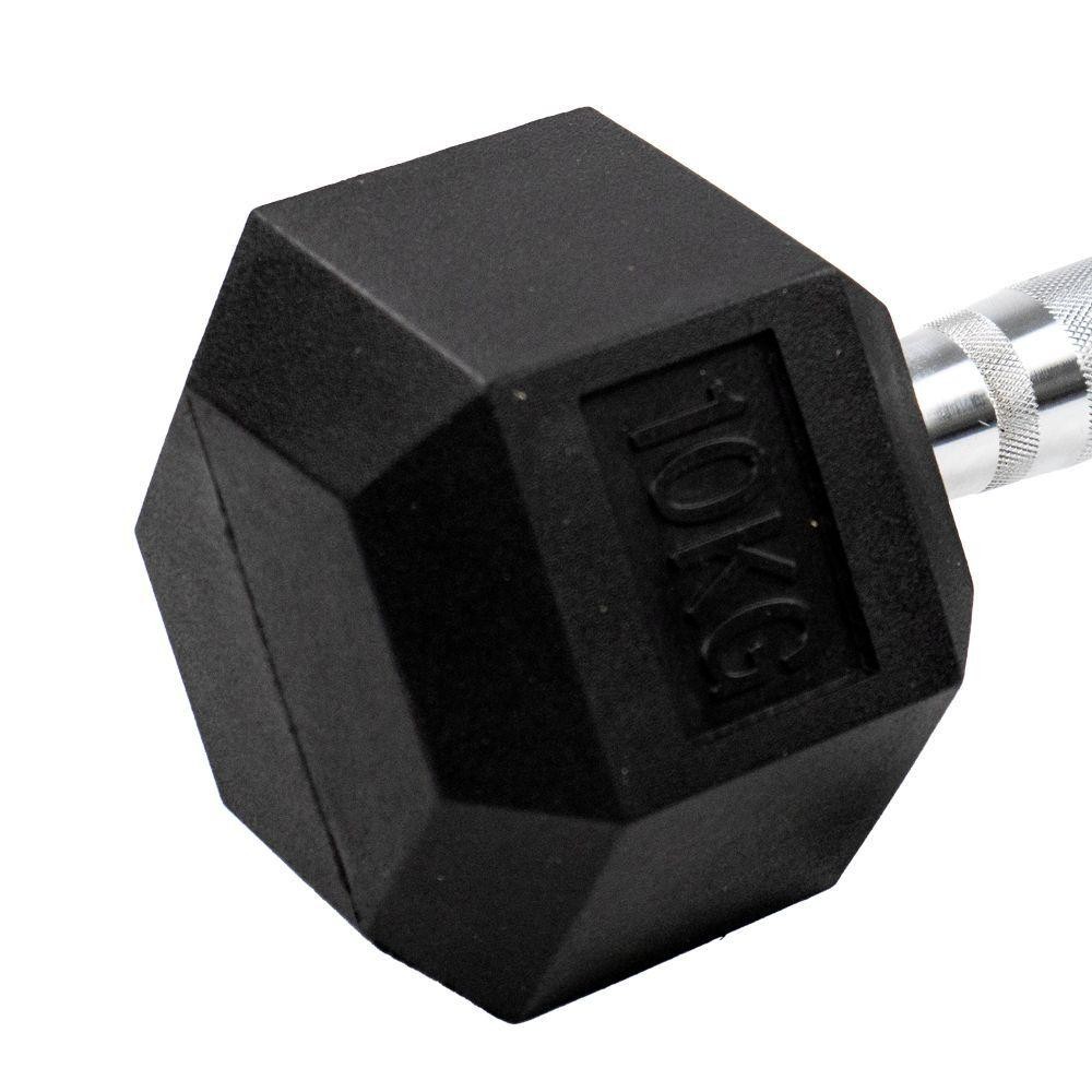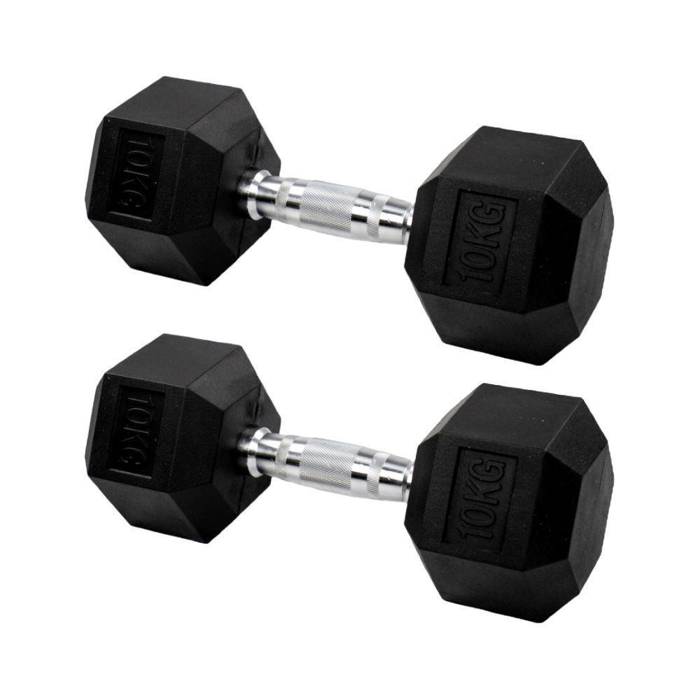 Par Halteres 10kg + 10kg Dumbbell Sextavado Emborrachado Pegada Cromada Gallant (GDb10F3B-Pt)