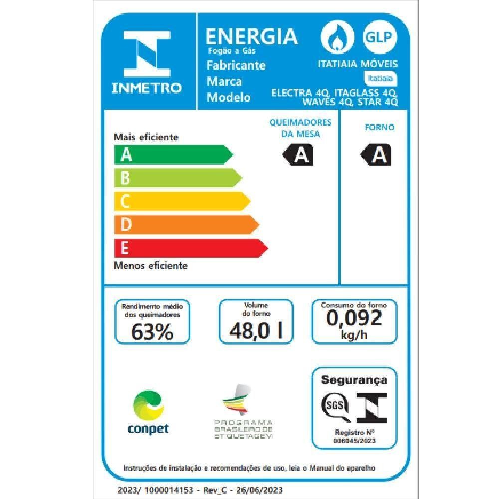 Fogão Itatiaia Itaglas Piso 4 Bocas Preto Mesa De Vidro Bivolt 3700000370