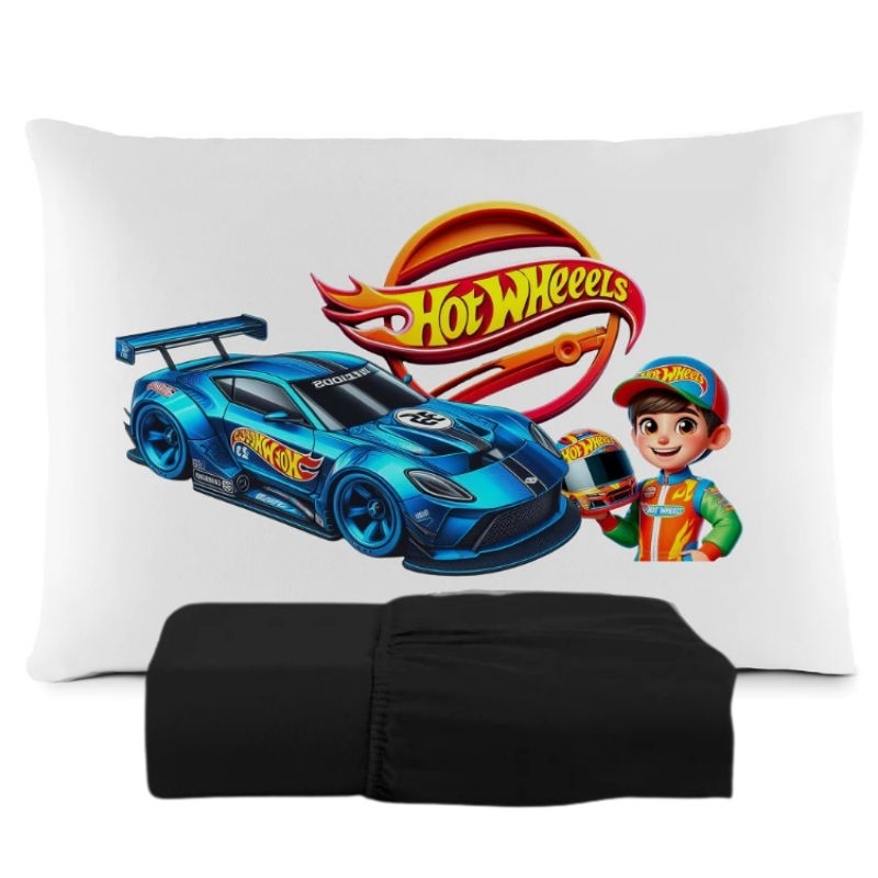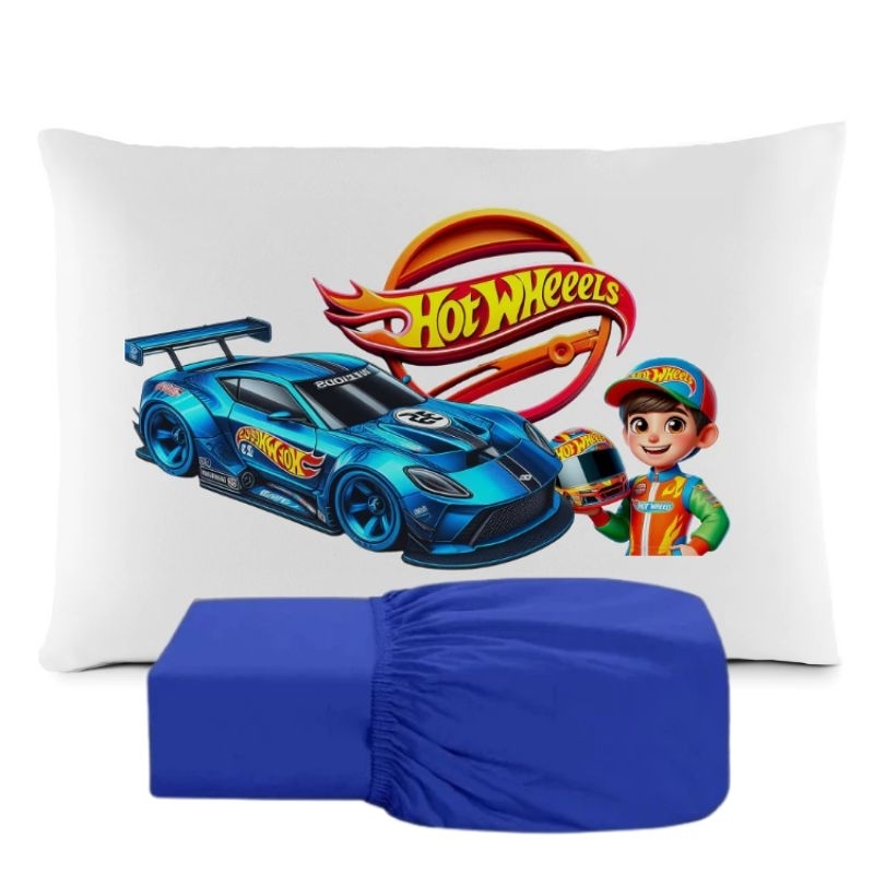JOGO DE LENÇOL SOLTEIRO INFANTIL DE LUXO HOT WHEELS MENINO FRONHA TRAVESSEIRO, LENÇOL DE ELASTICO
