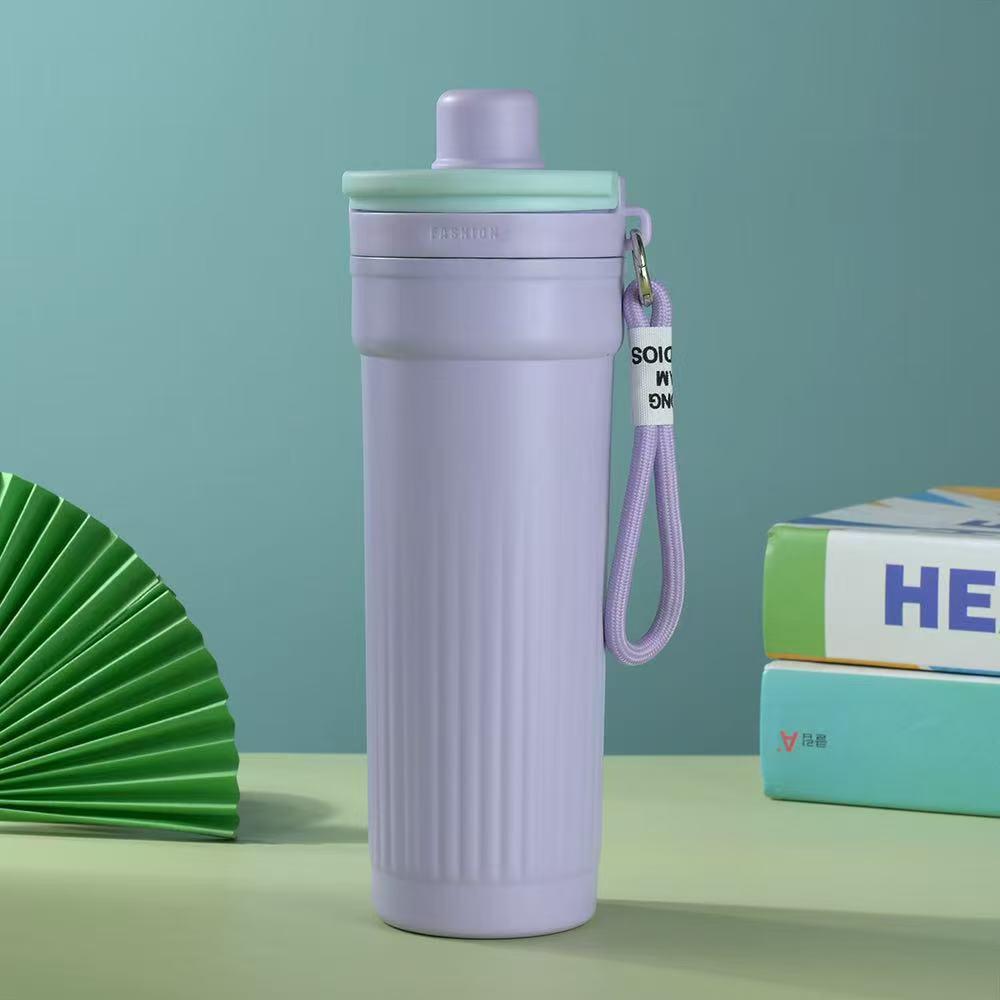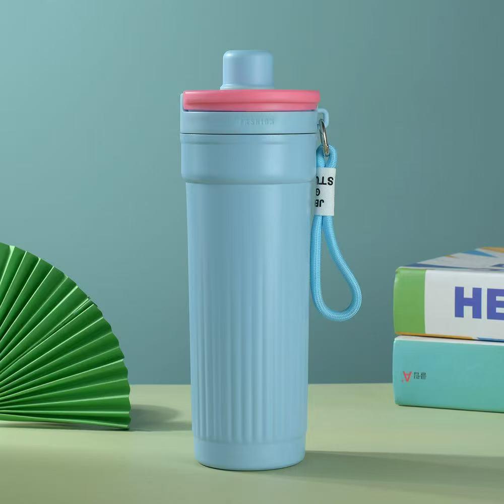 Garrafa Copo Térmico Com Alça De Aço Inox Com Canudo Parede Dupla 700ml