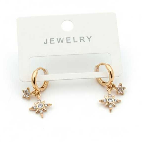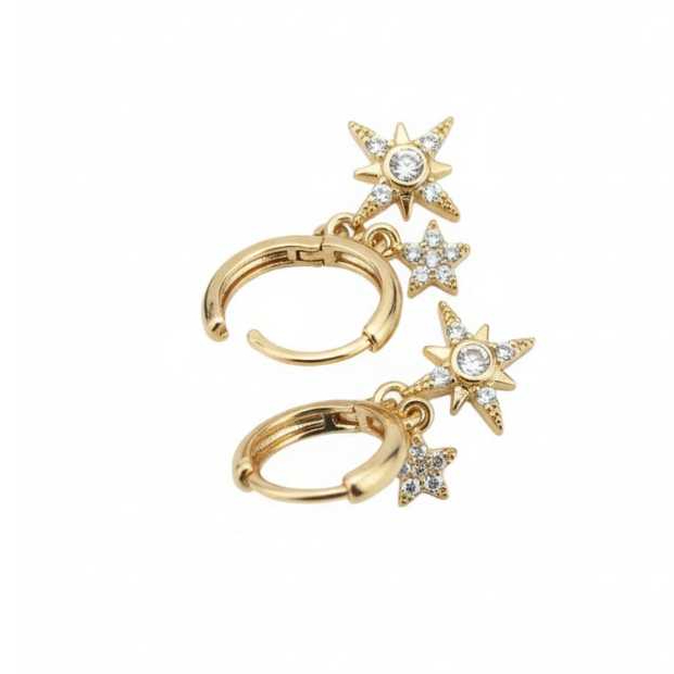 Brinco De Argola Com Estrela Zircônia Banhado Ouro 18K Dourado Estilo Moderno Elegante