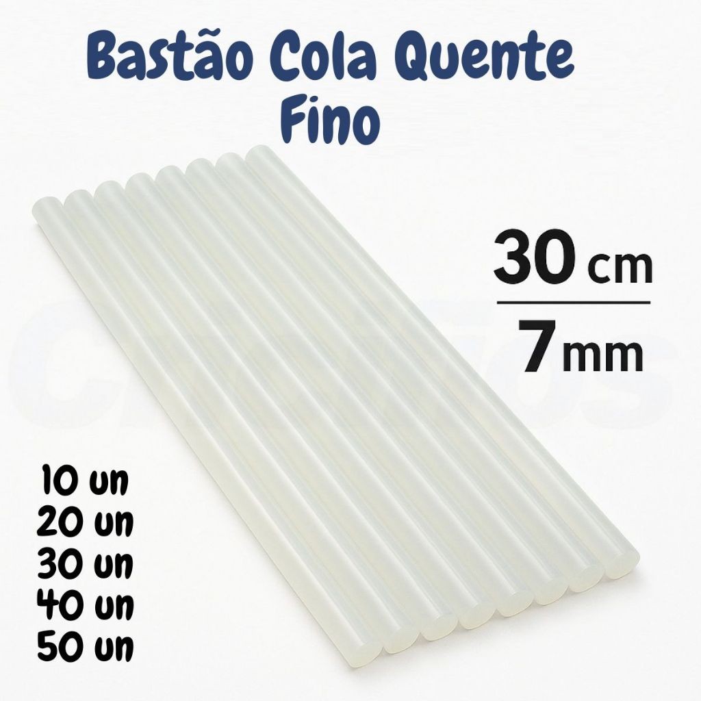 Bastão Cola Quente Fino 30cm x 7mm | Cola Transparente para Artesanato Madeira Plástico Tecido