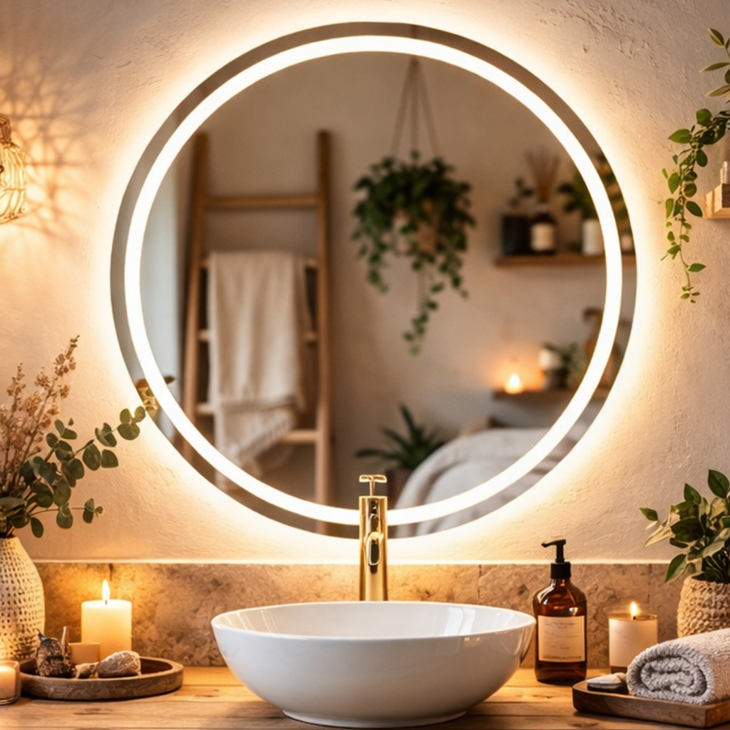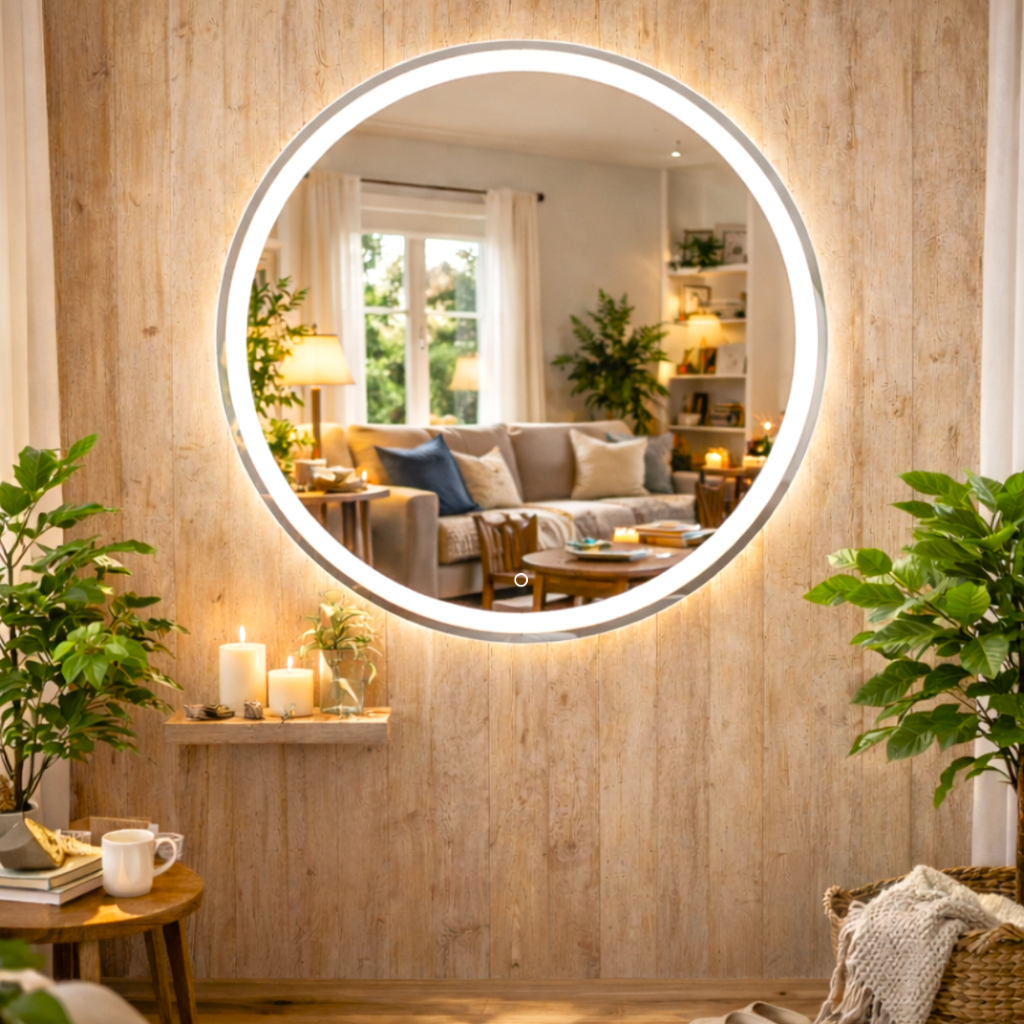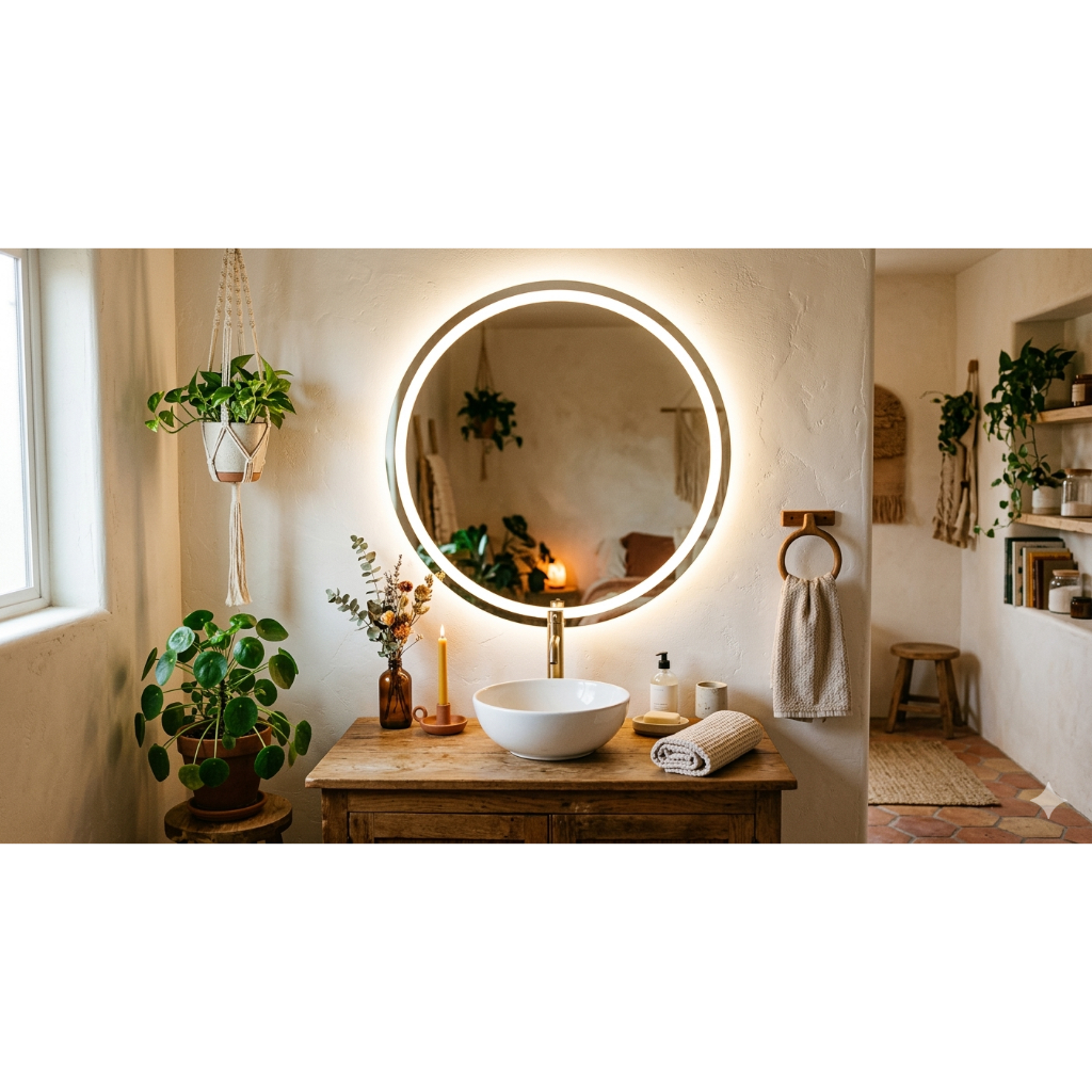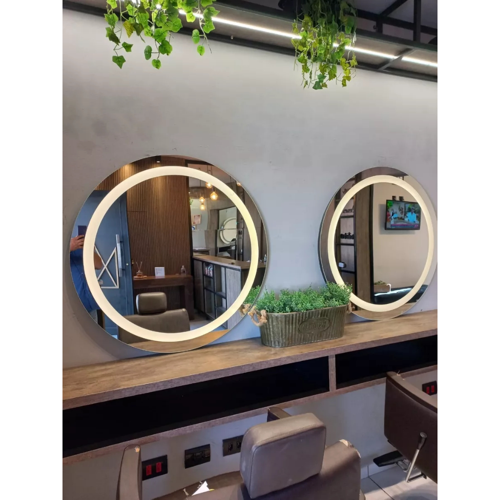 Espelho Redondo com Luz de Led 50cm Branco Quente