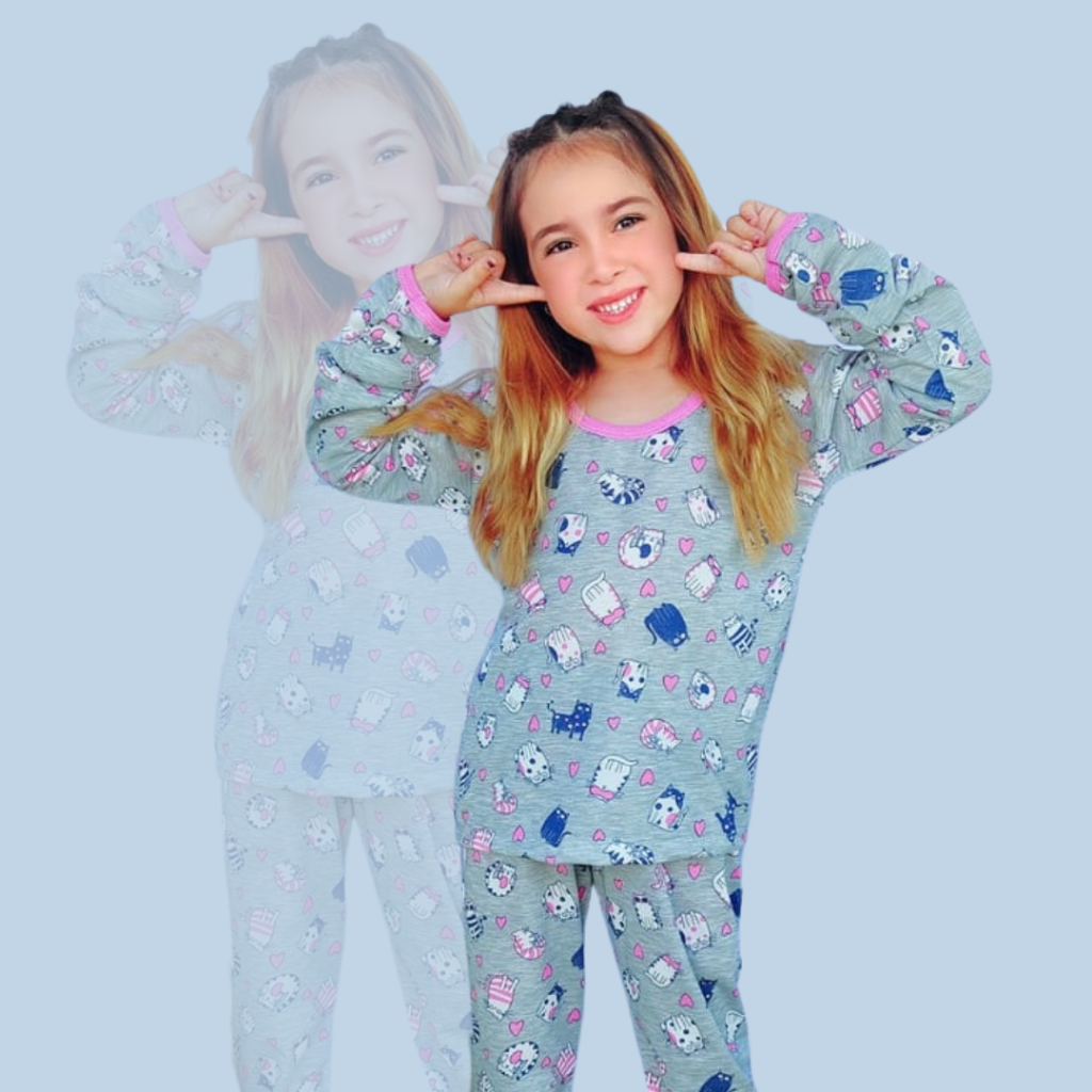 Pijama Infantil Feminino Manga Longa - Veste de 1 a 13 anos