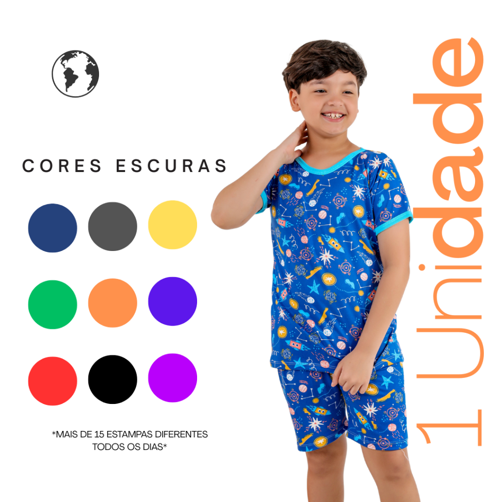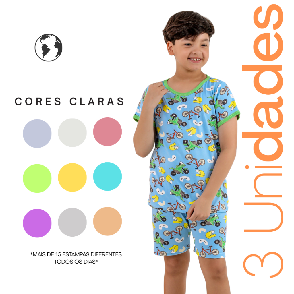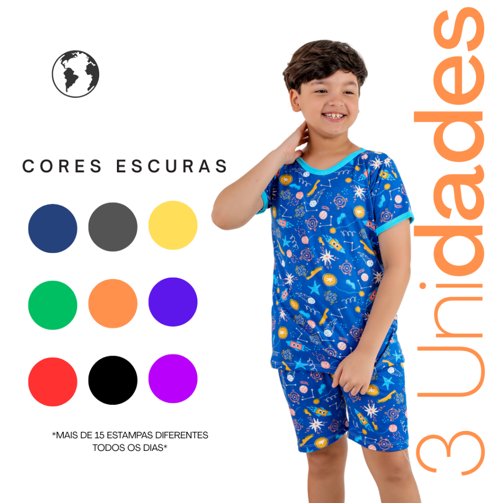 Kit C/1 2 3 Pijama Infantil Manga Curta Menino - Veste De 1 a 13 Anos