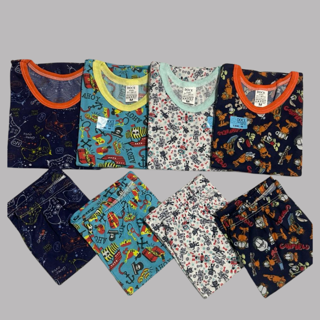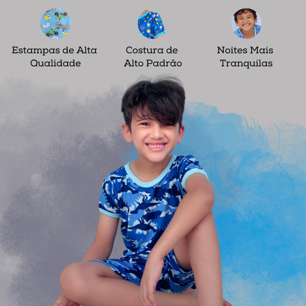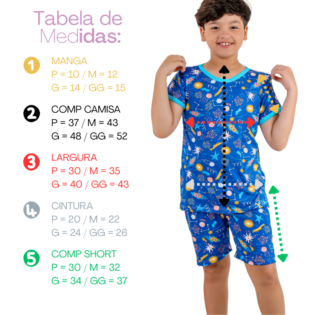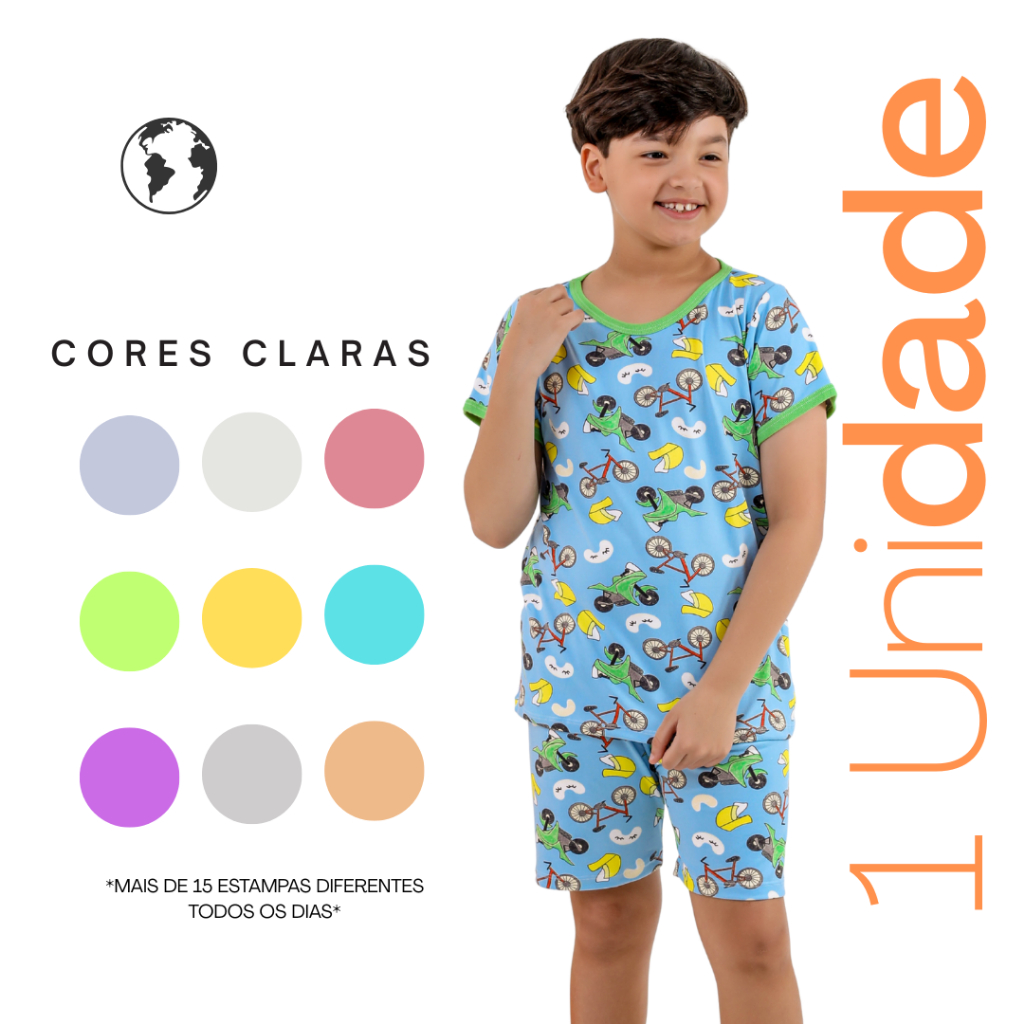 Kit C/1 2 3 Pijama Infantil Manga Curta Menino - Veste De 1 a 13 Anos