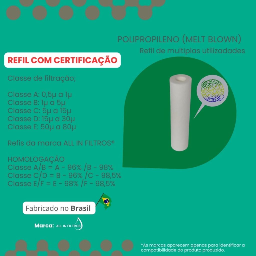 Kit 6 Refil de polipropileno para filtro cavalete, caixa d'água e pontos de uso 9 3/4"