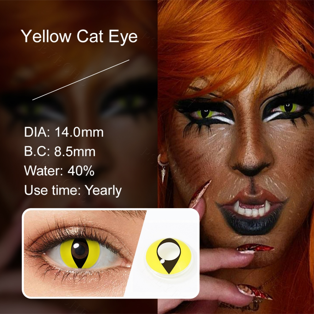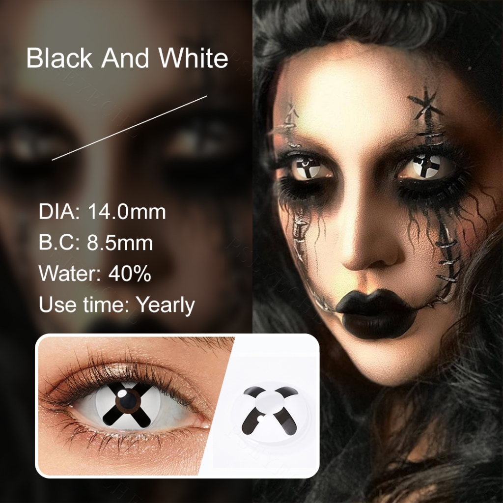 Pseyeche Lentes De Contato Olho De Gato Preto e Branco Cosplay Anime para Halloween 14,0mm