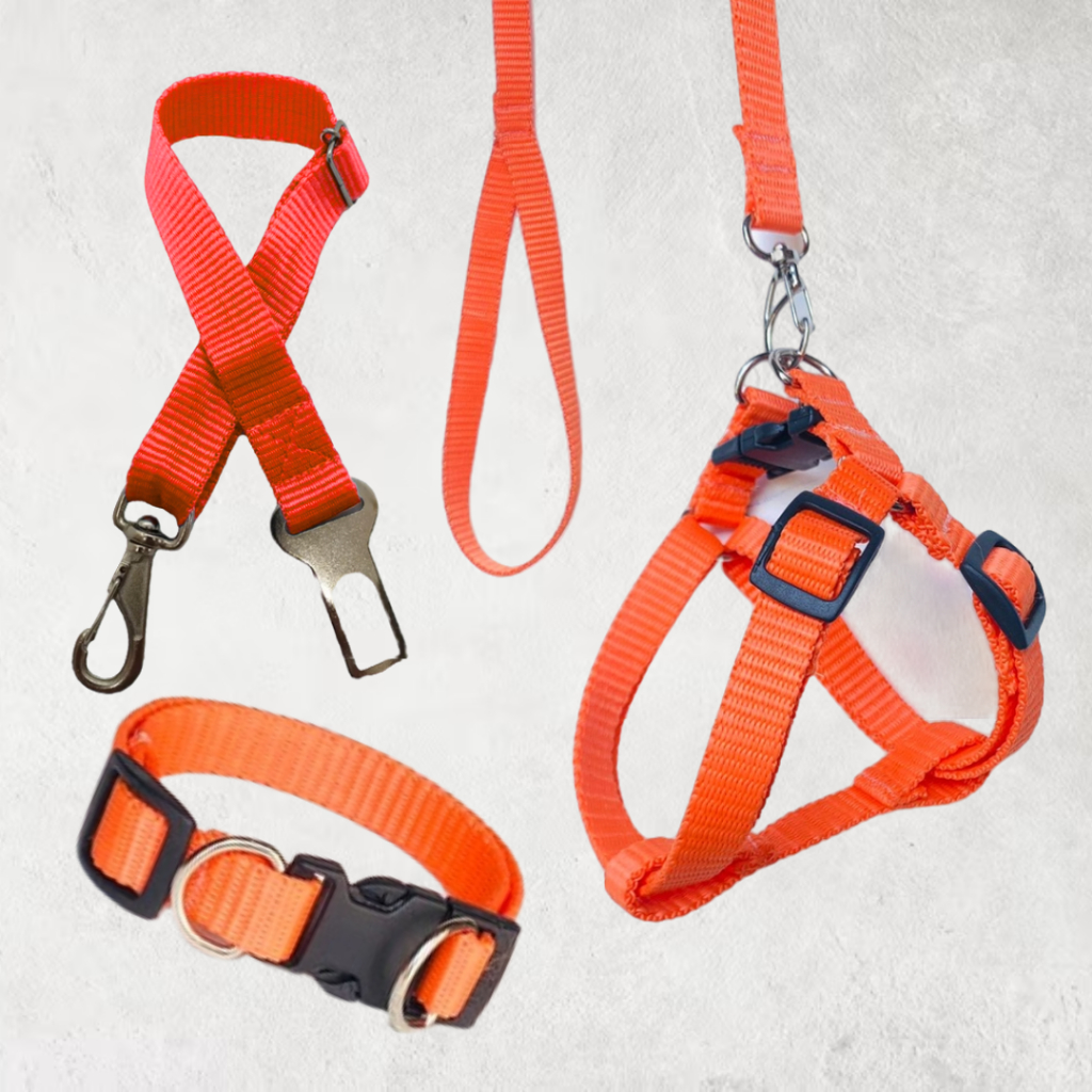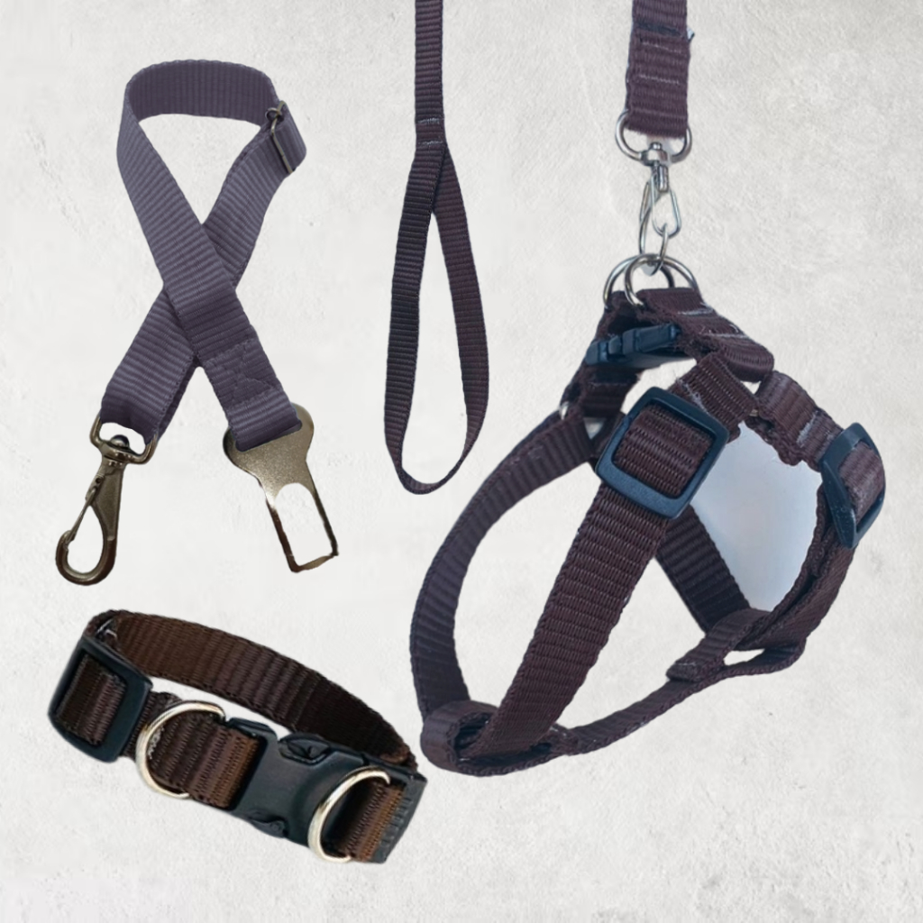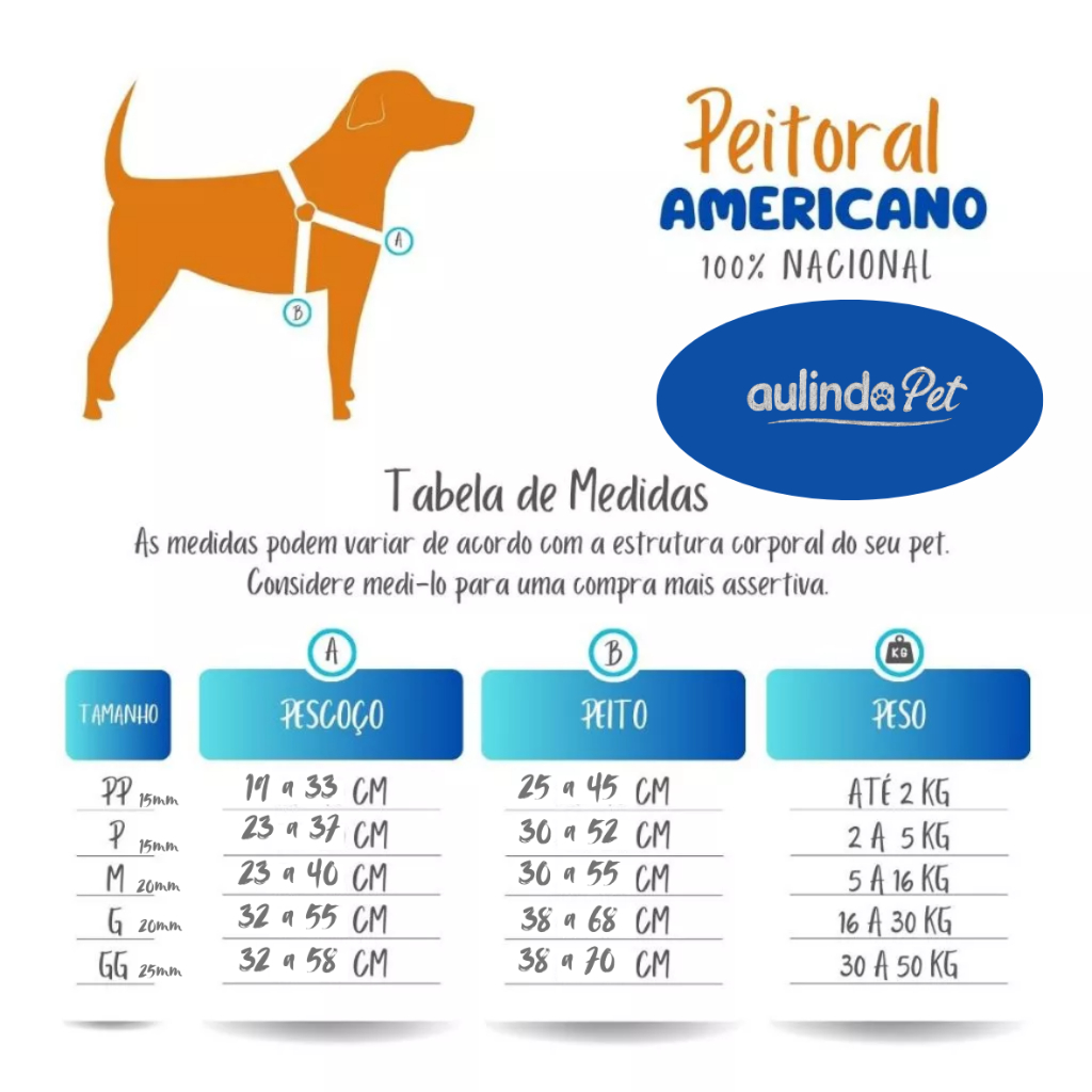 KIT COMPLETO ESTILO AMERICANO - PEITORAL AJUSTÁVEL, COLEIRA, GUIA E CINTO DE SEGURANÇA