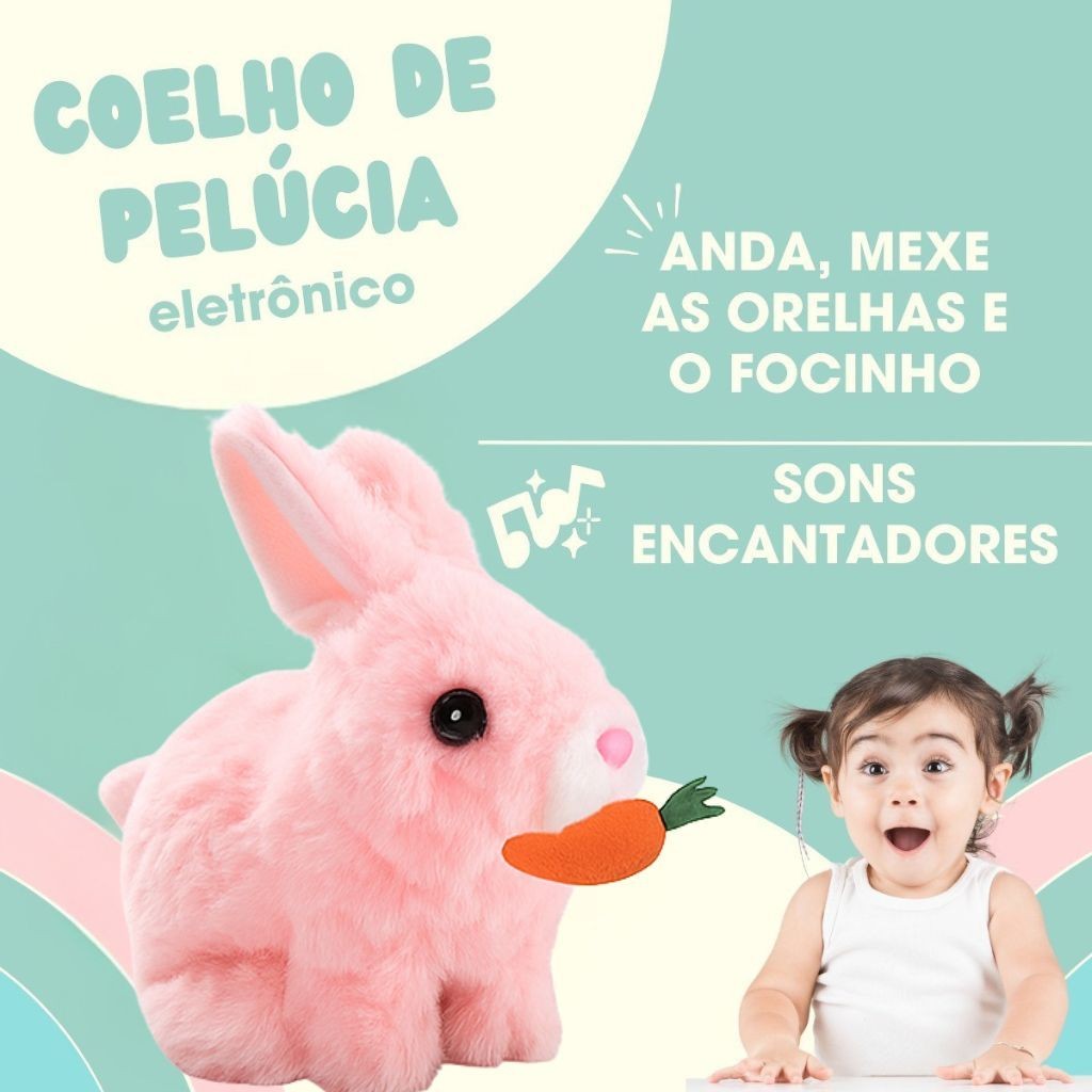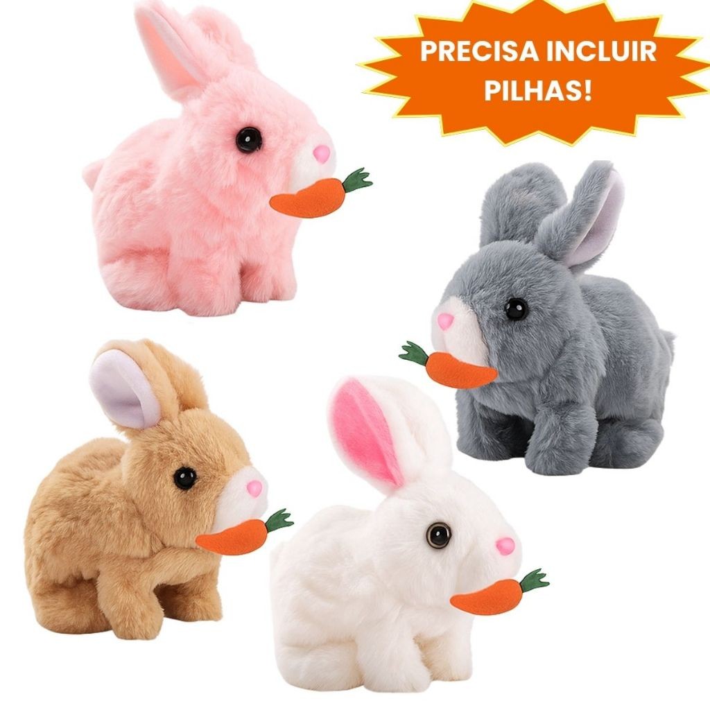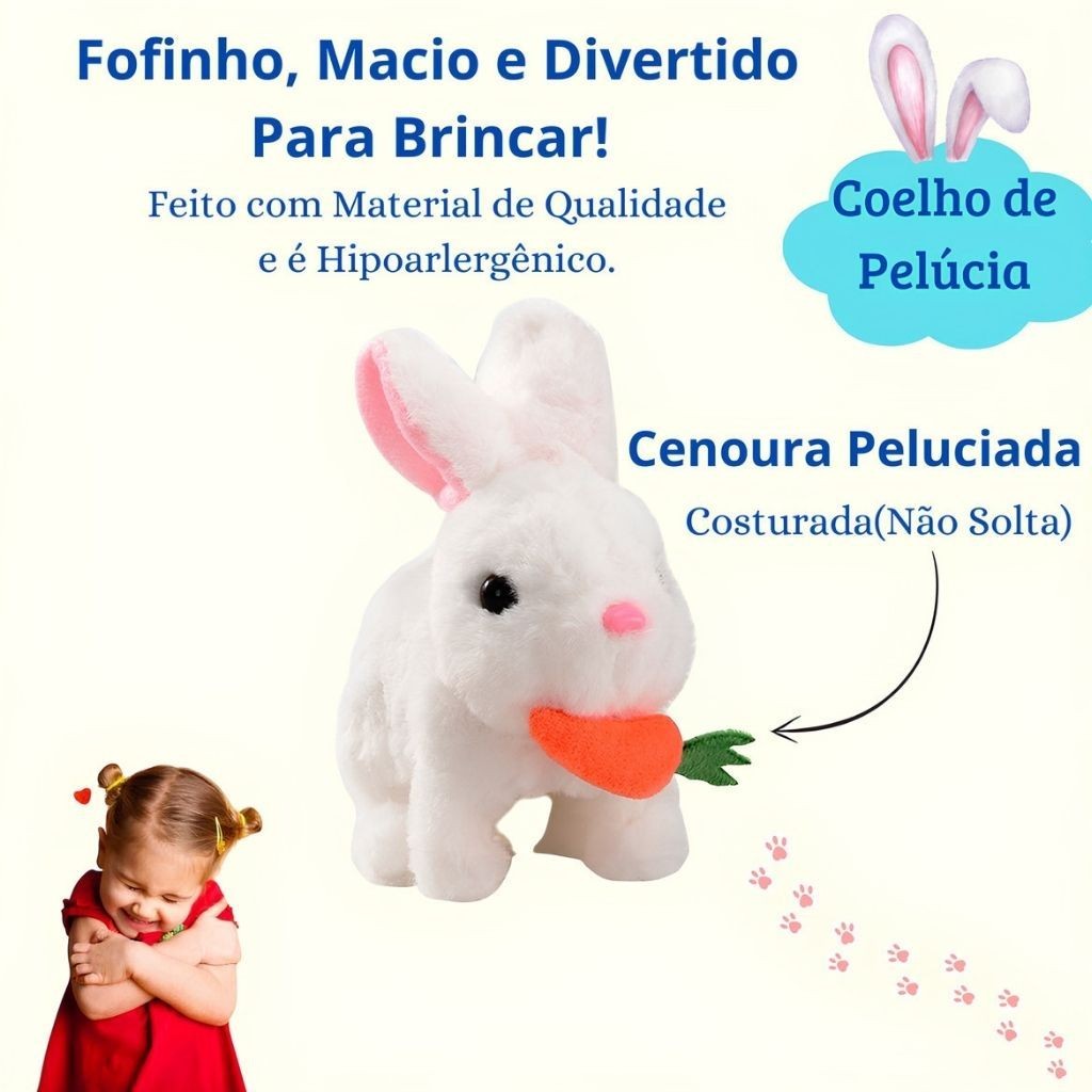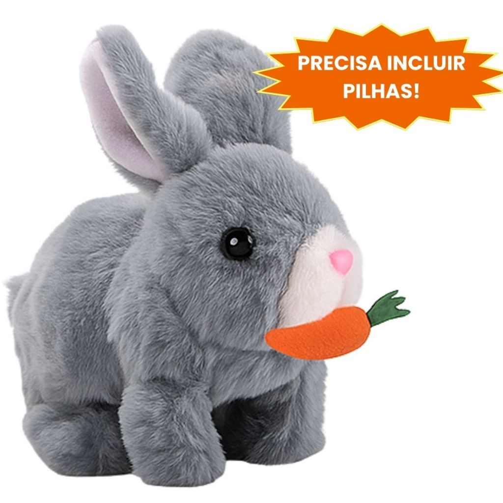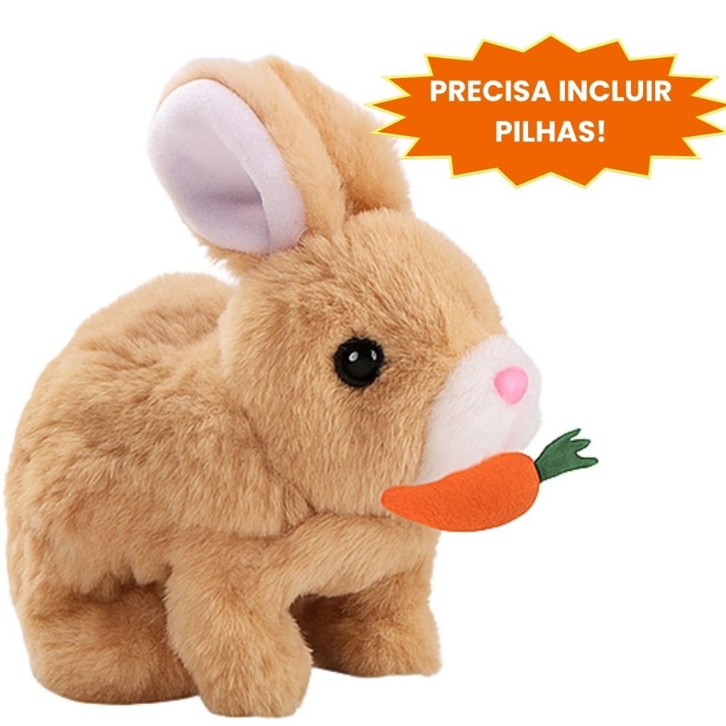 Coelho Interativo de Pelúcia Anda Emite Luz Coelho com Cenourinha Sons Com Pilhas Envio Rápido