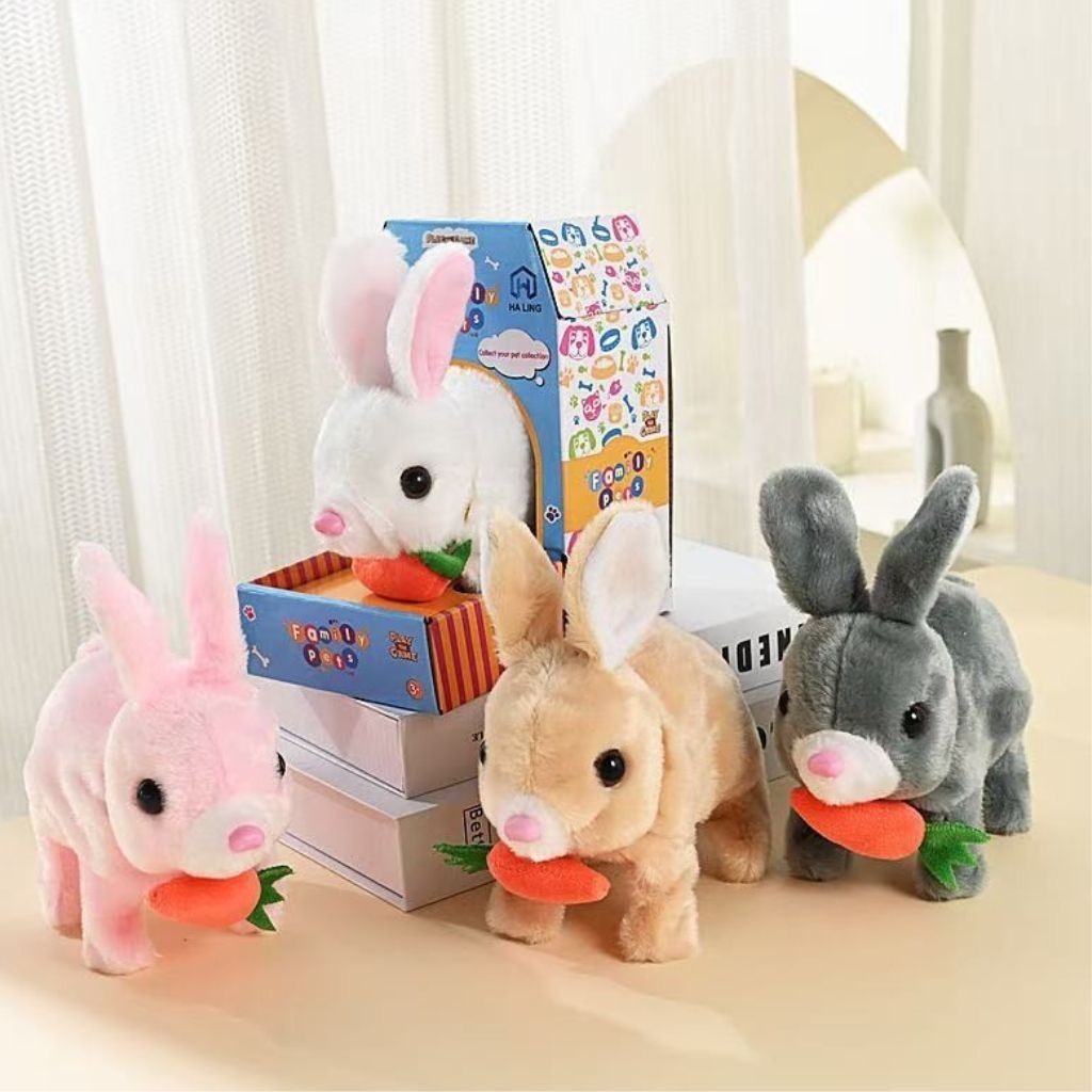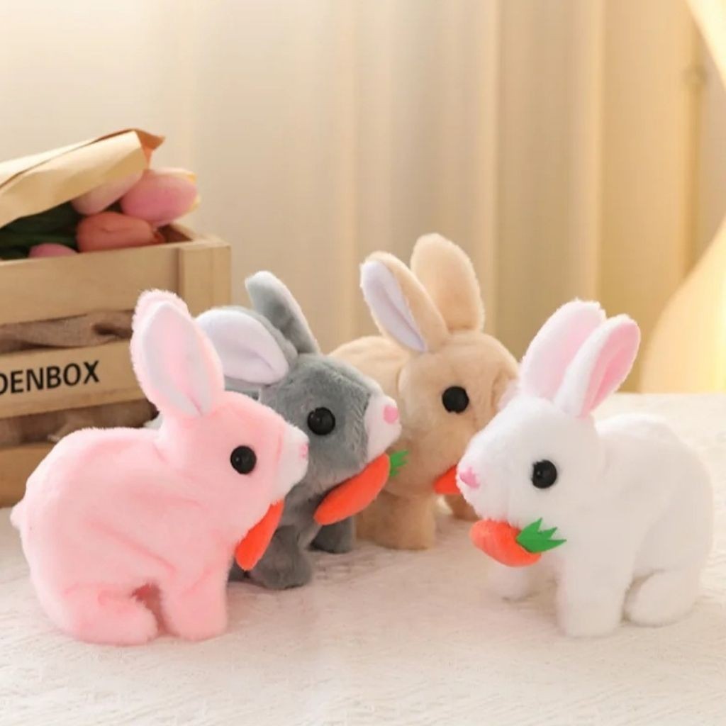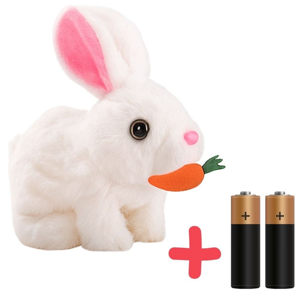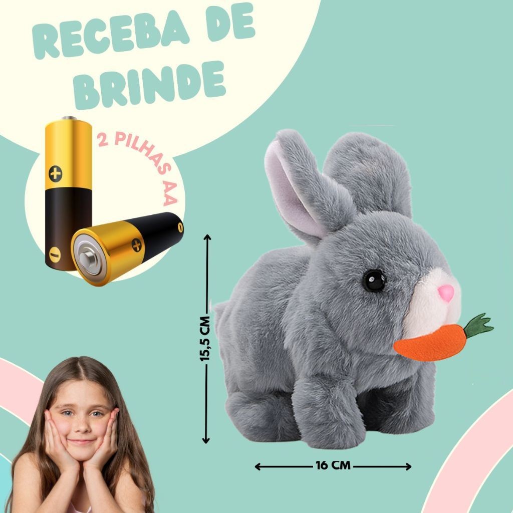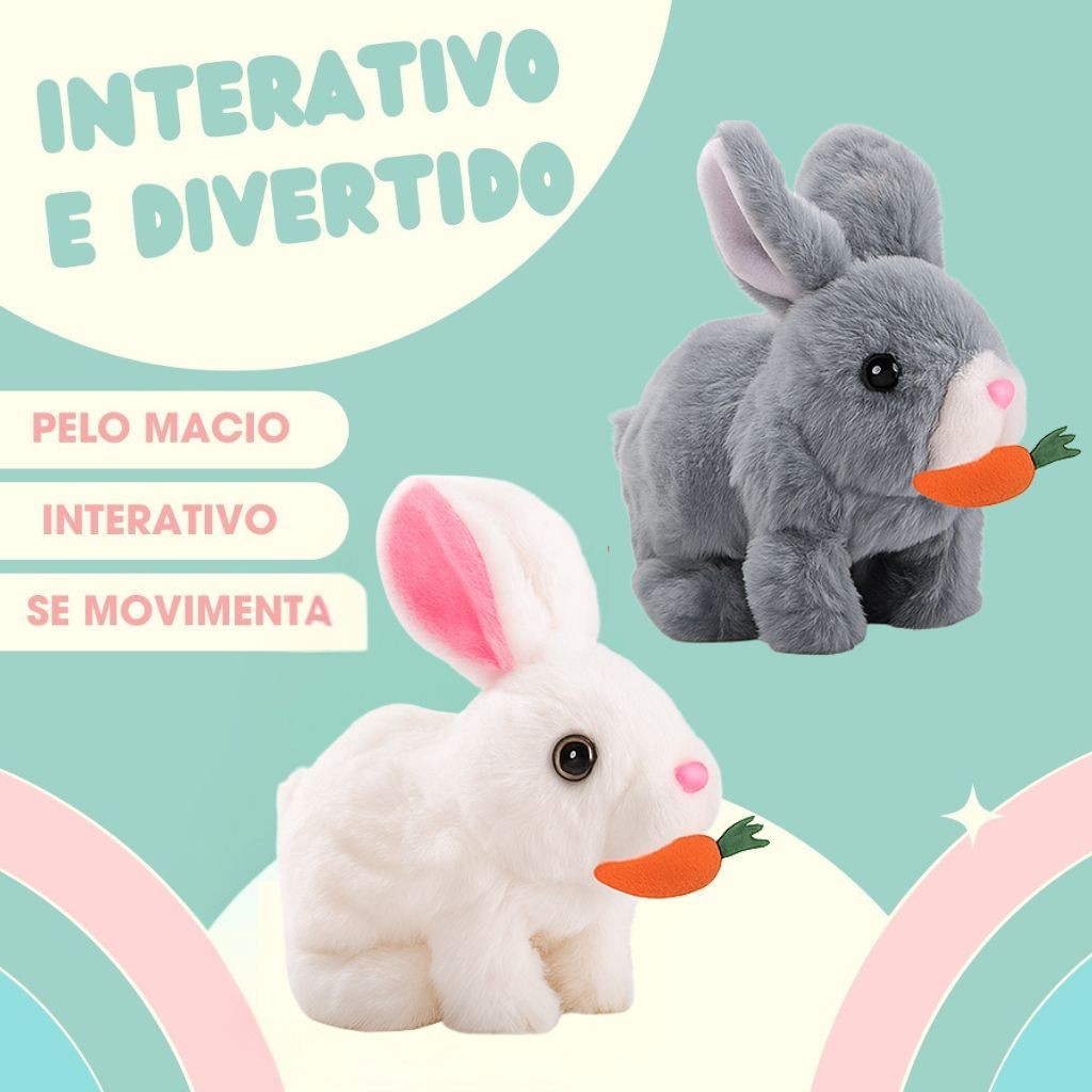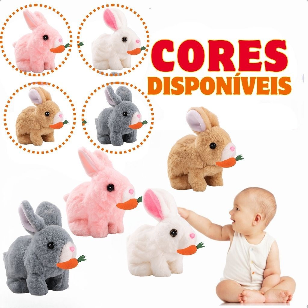 Coelho Interativo de Pelúcia Anda Emite Luz Coelho com Cenourinha Sons Com Pilhas Envio Rápido