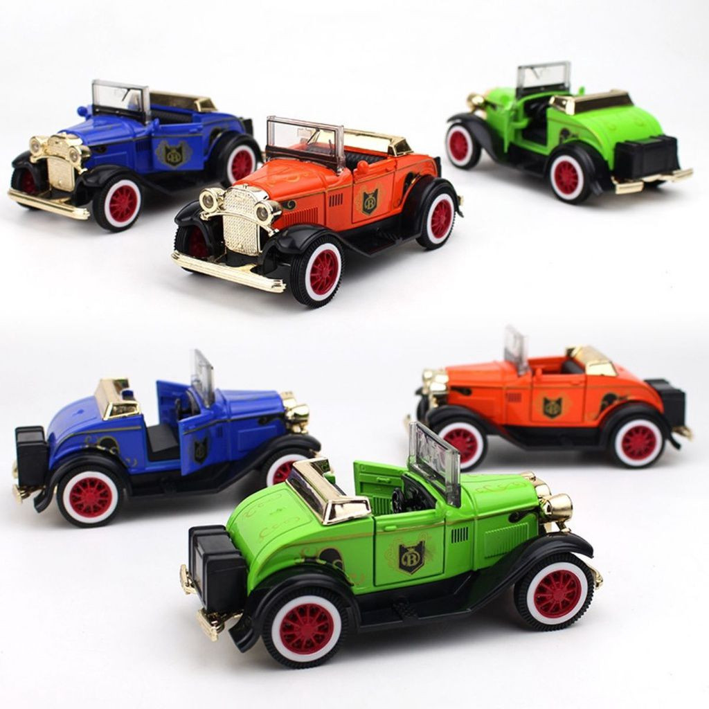 Miniatura Carrinho de ferro de metal abre as portas fricção som colecionador luz Calhambeque