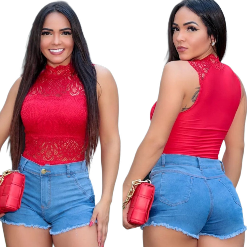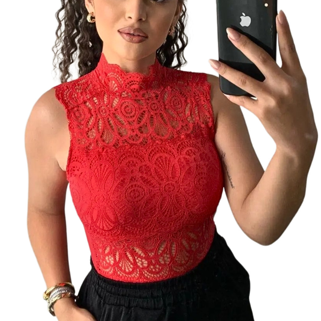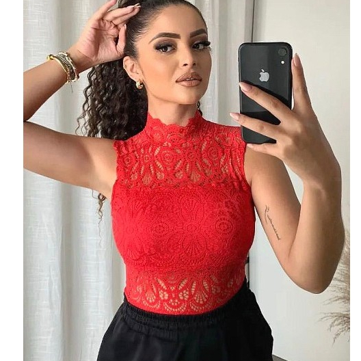Body Feminino Renda Regata Com Gola Alta