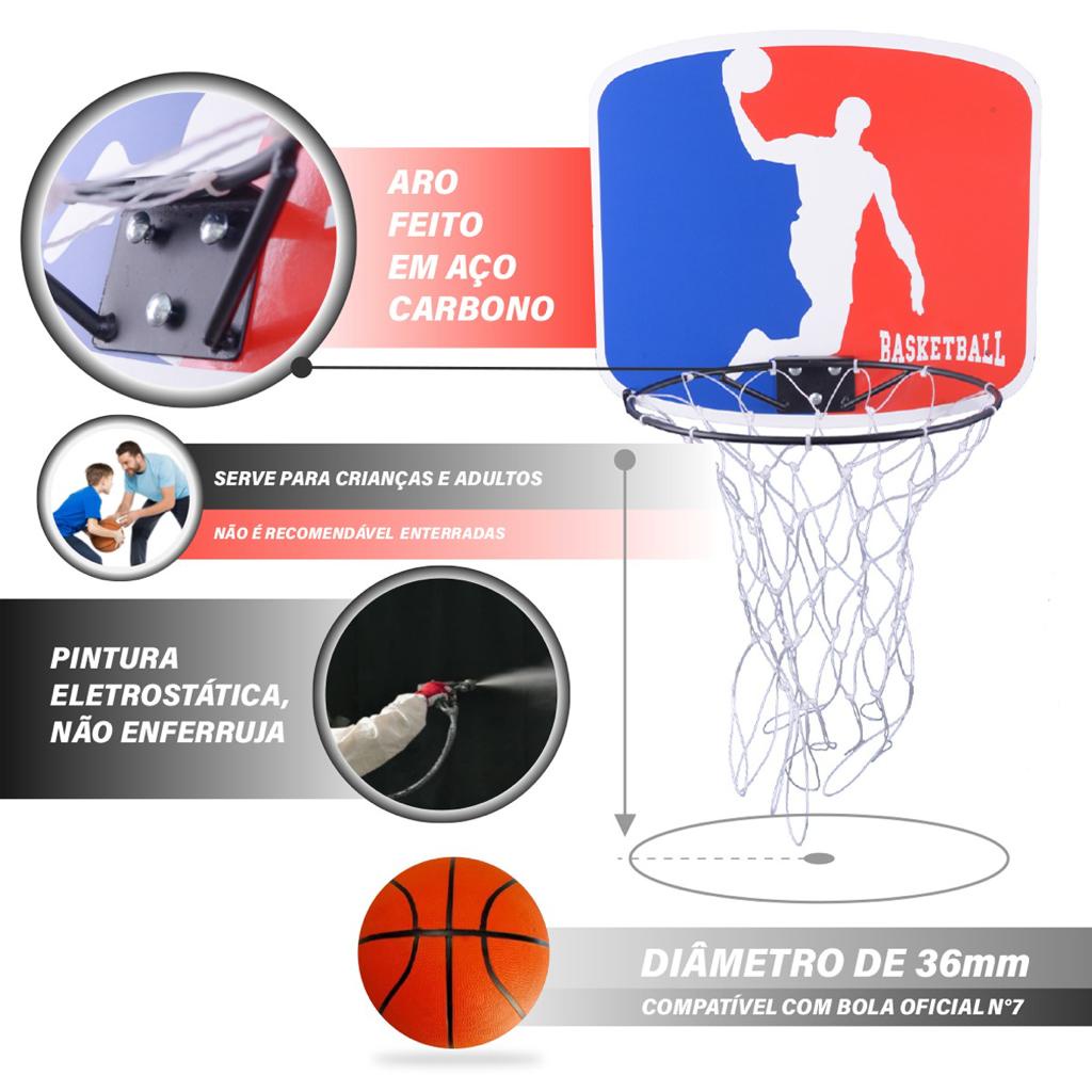 Tabela Cesta Basquete Aro De Ferro +Rede - P/ Bola Oficial 7 Reforçado