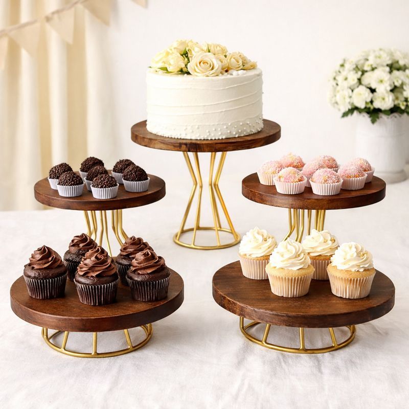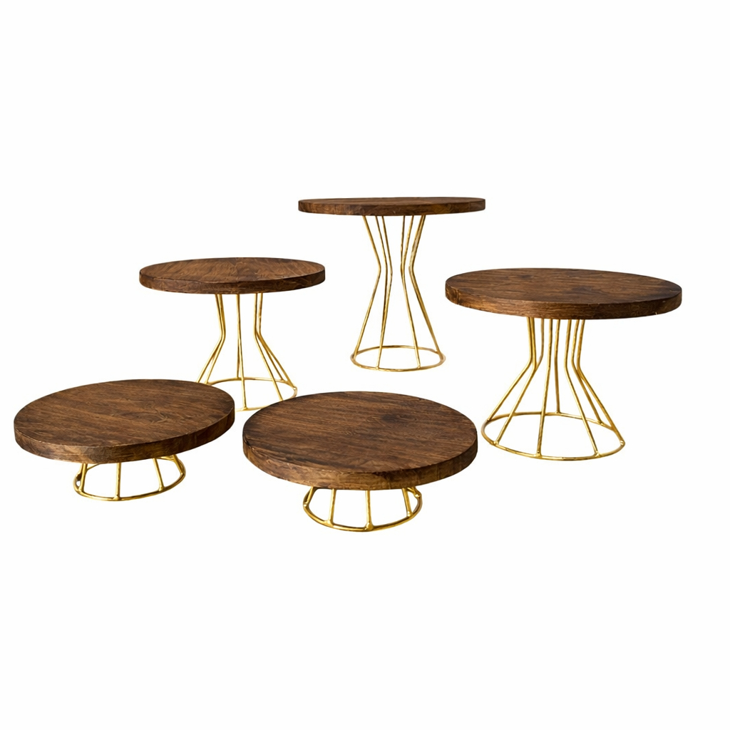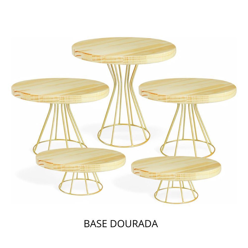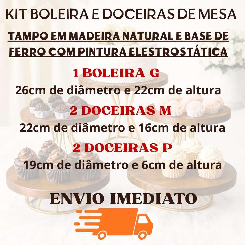 KIT BOLEIRA E DOCEIRAS 5 PEÇAS DECORATIVA MODELO ROMA MADEIRA RÚSTICO E BASE EM FERRO