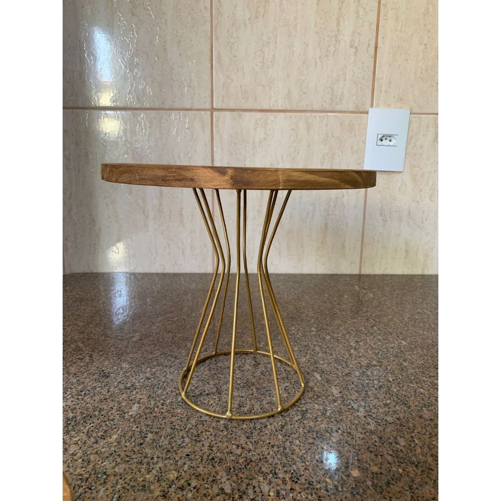 Boleira de Festa Suporte Para Doces Decoração de Mesa Madeira e Base de Ferro