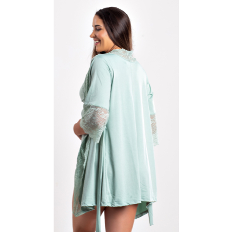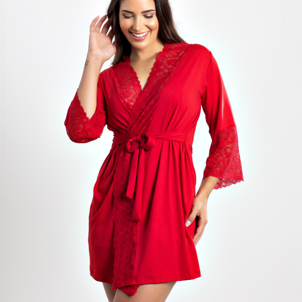 Robe Hoby Luxo Com Renda E Mangas Sino Sensual Sexy Conforto