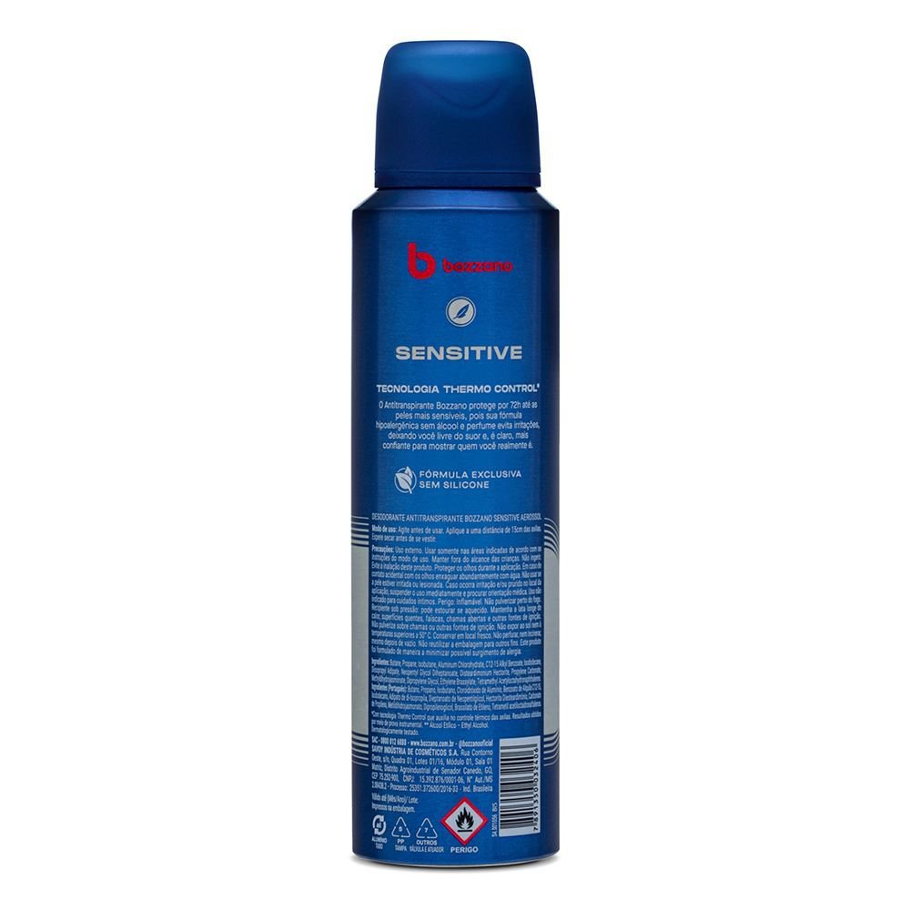 Desodorante Bozzano Sensitive Sem Perfume Aerosol Antitranspirante 48h com 150ml