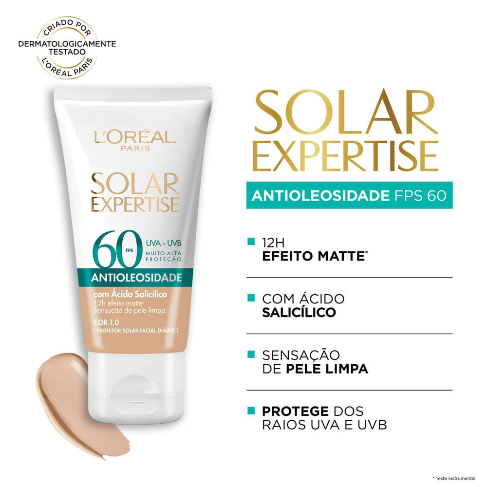 Protetor Solar Facial L'Oréal Paris Solar Expertise Antioleosidade FPS 60 Cor 1.0 Clara 40g