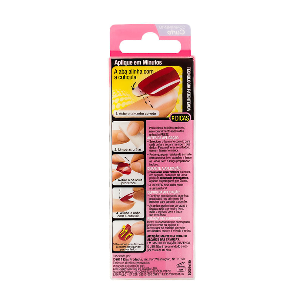 Unhas Postiças Autocolantes First Kiss Impress Curto Cor Girlie Girl com 24 Unidades