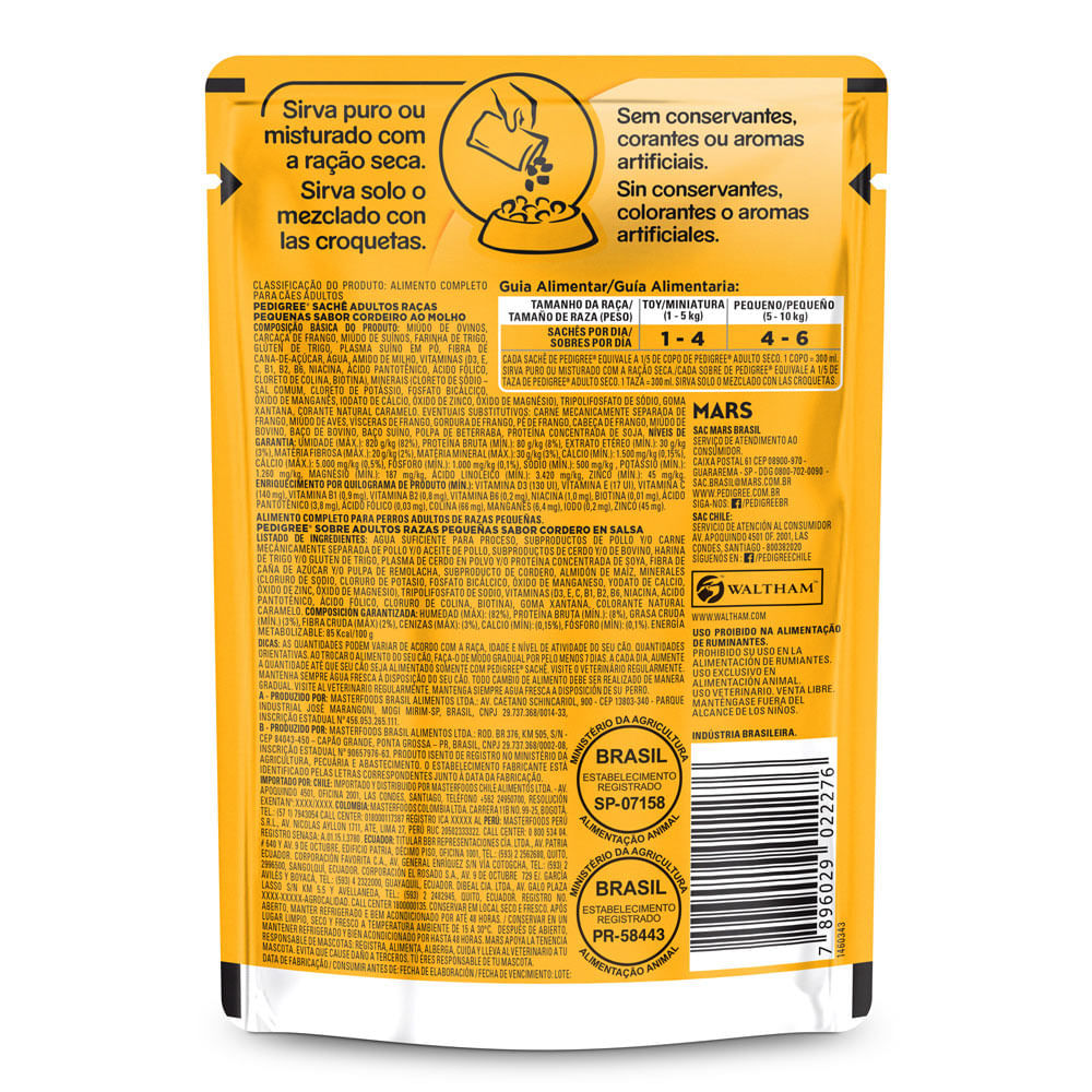 Ração Úmida para Cachorro Pedigree Adulto Sabor Cordeiro ao Molho em Sachê 100g