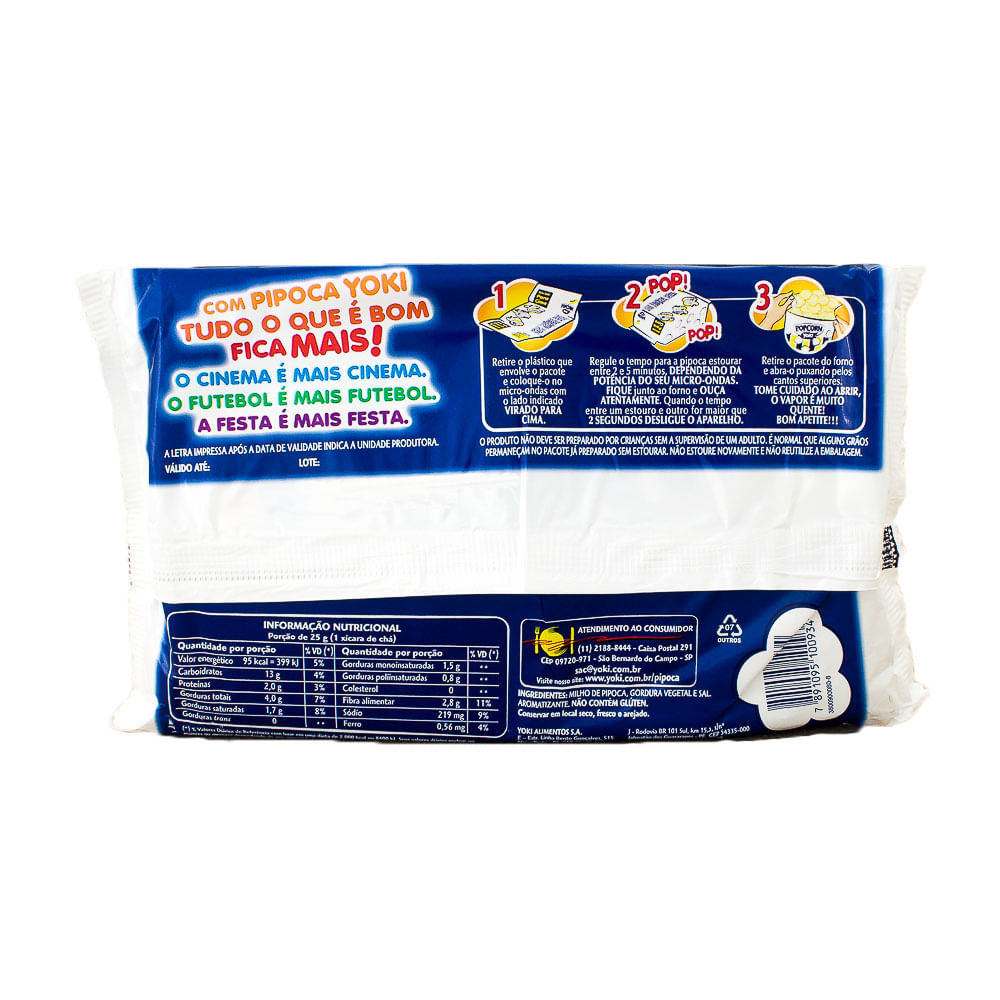 Pipoca para Microondas Popcorn Yoki Manteiga 0% Gordura Transgênicas, Rico em Fibras, Fonte de Ferro 100g