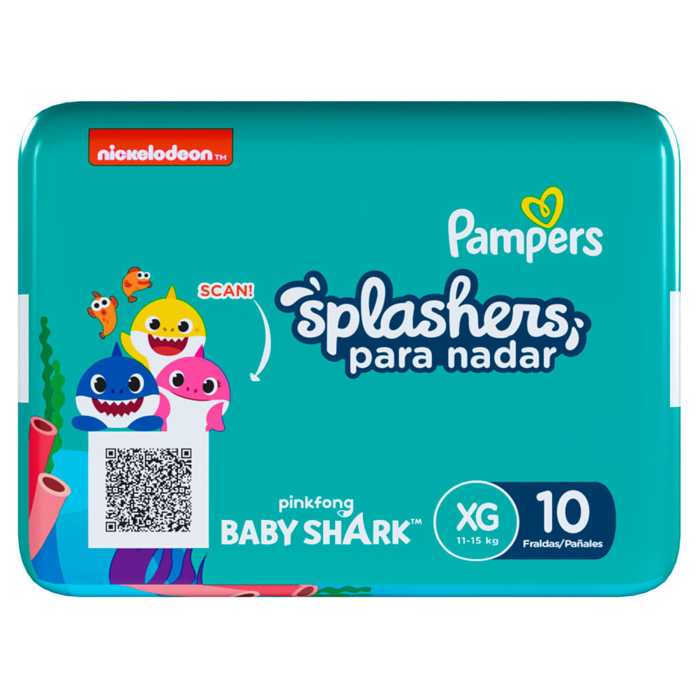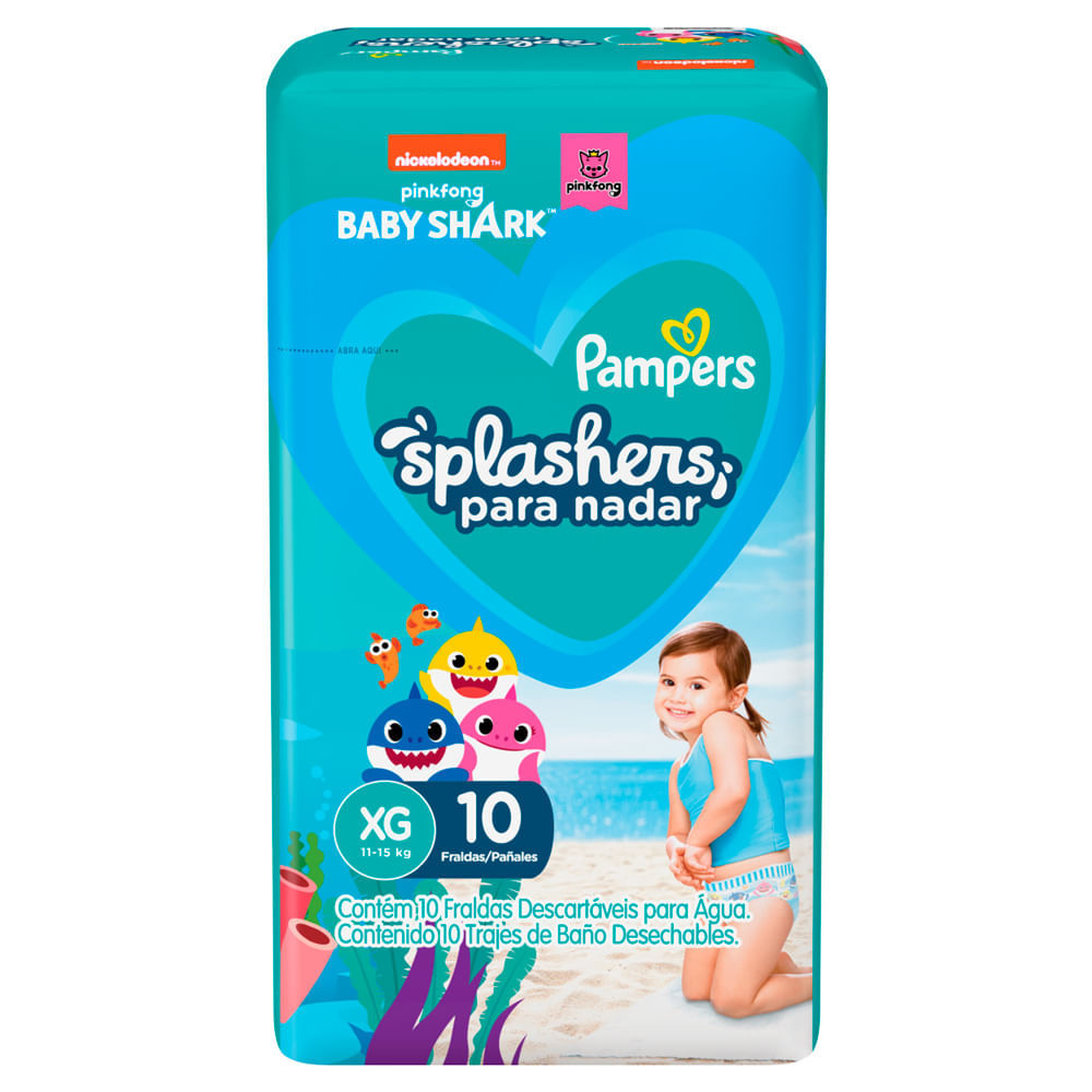 Fralda Pampers Splashers para Nadar Baby Shark XG com 10 Unidades Descartáveis