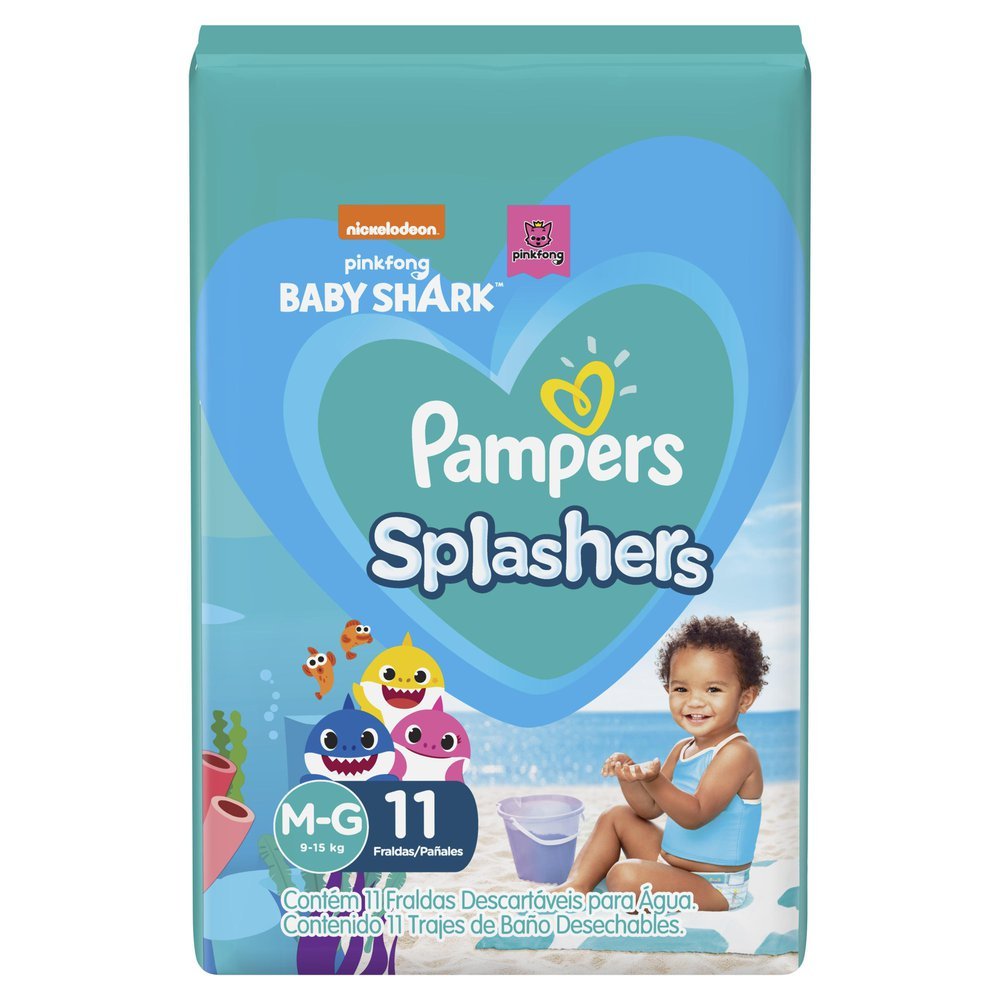 Fralda Pampers Splashers Baby Shark Tamanho M/G com 11 Fraldas Descartáveis