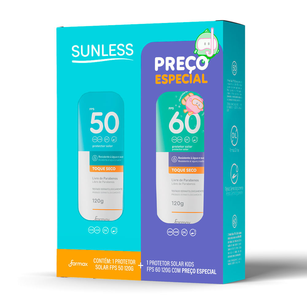 Protetor Solar Sunless FPS 50 e Protetor Solar Kids FPS 60 120g Cada