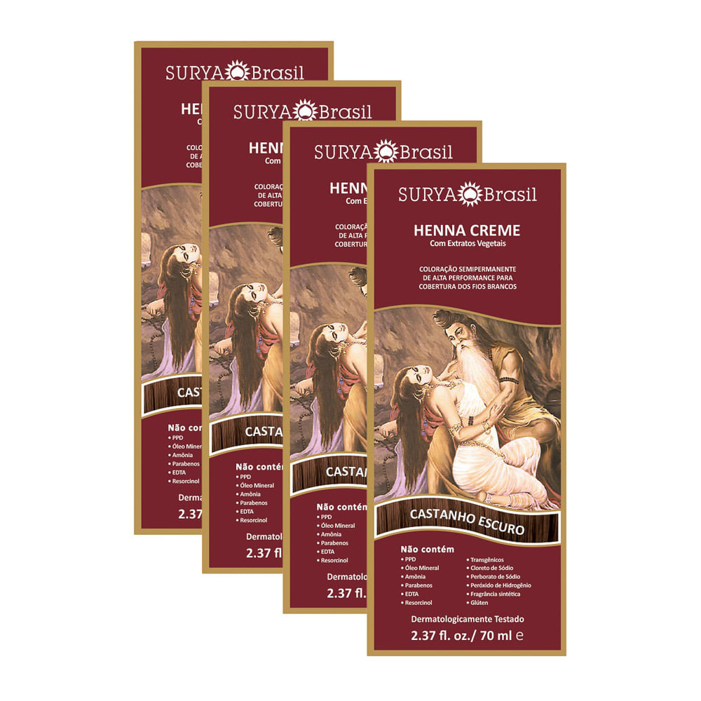 Henna Creme Surya Brasil Castanho Escuro | Kit com quatro unidades