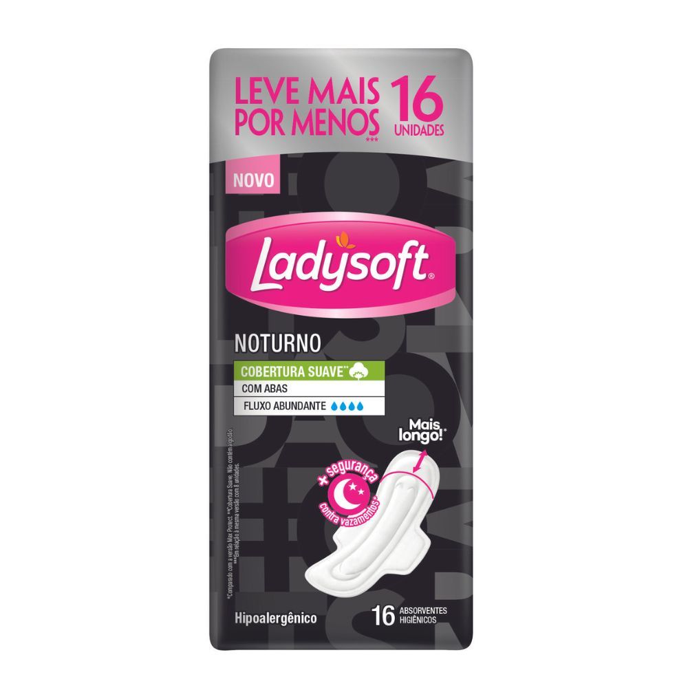 Absorvente Ladysoft Normal Noturno Cobertura Suave com Abas 16 Unidades Leve Mais Por Menos