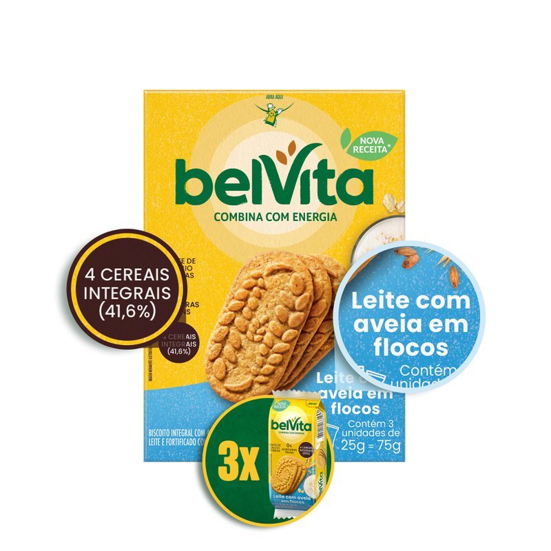 Biscoito BelVita Leite E Aveia Multipack 75g com 3 Unidades de 25g