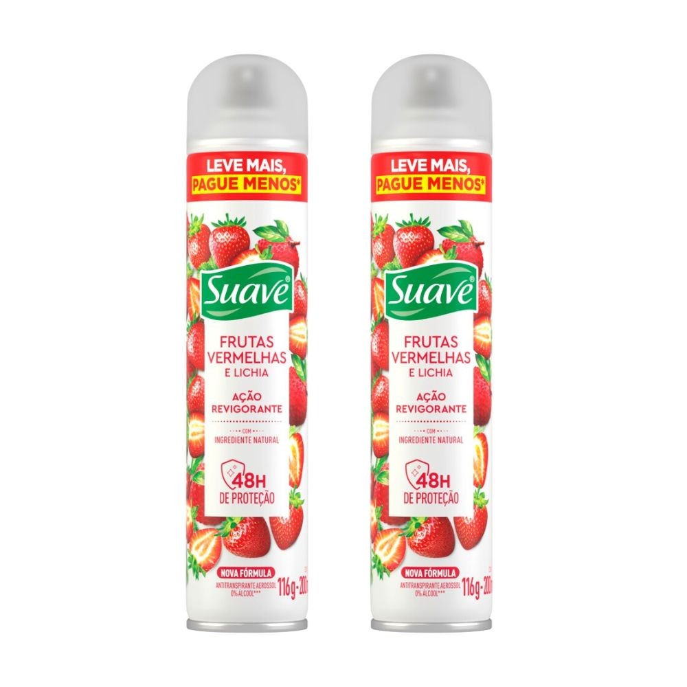 Kit 2 Desodorante Suave Frutas Vermelhas e Lichia Aerossol Antitranspirante 48h 200ml