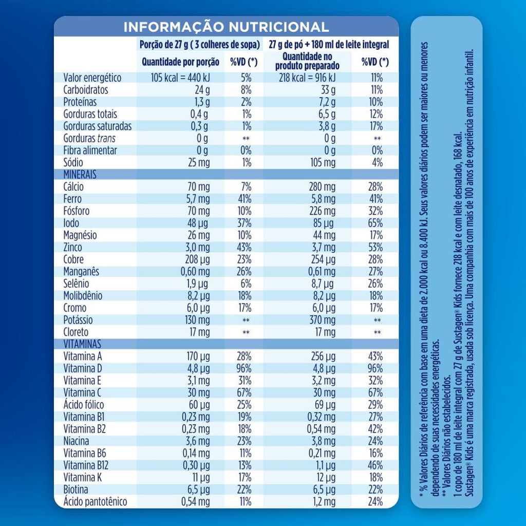 Complemento Alimentar Sustagen Kids Sabor Chocolate Sachê 700g