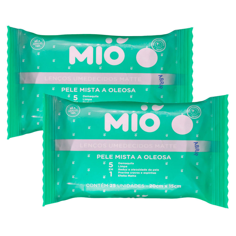 Kit 2 Lenço Umedecido Mió Micelar 5 em 1 Pele Mista a Oleosa com 25 Unidades