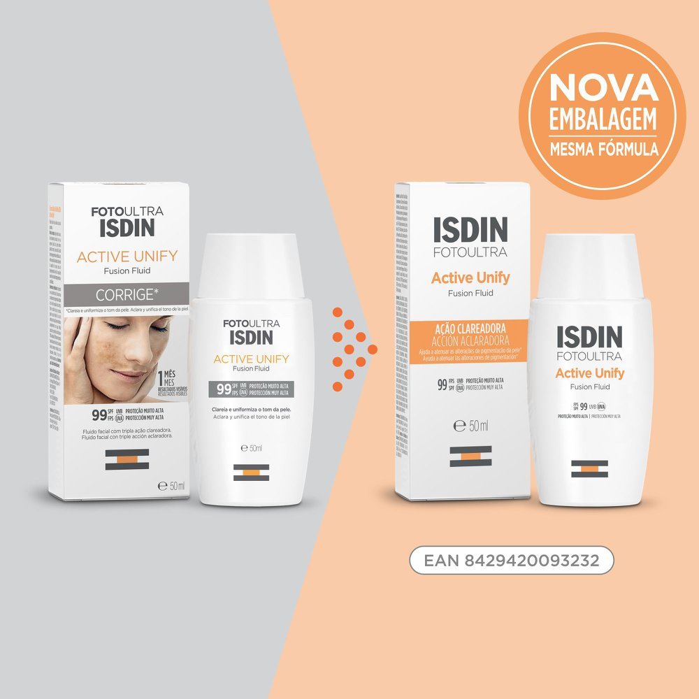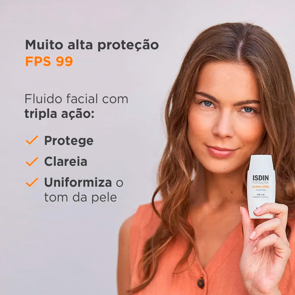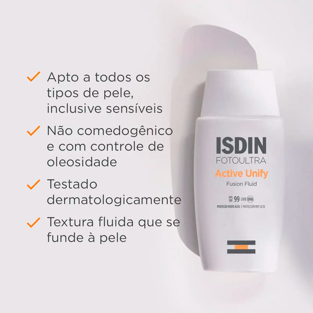 Protetor Solar Facial Foto Ultra ISDIN Active Unify Sem Cor FPS 99 50ml