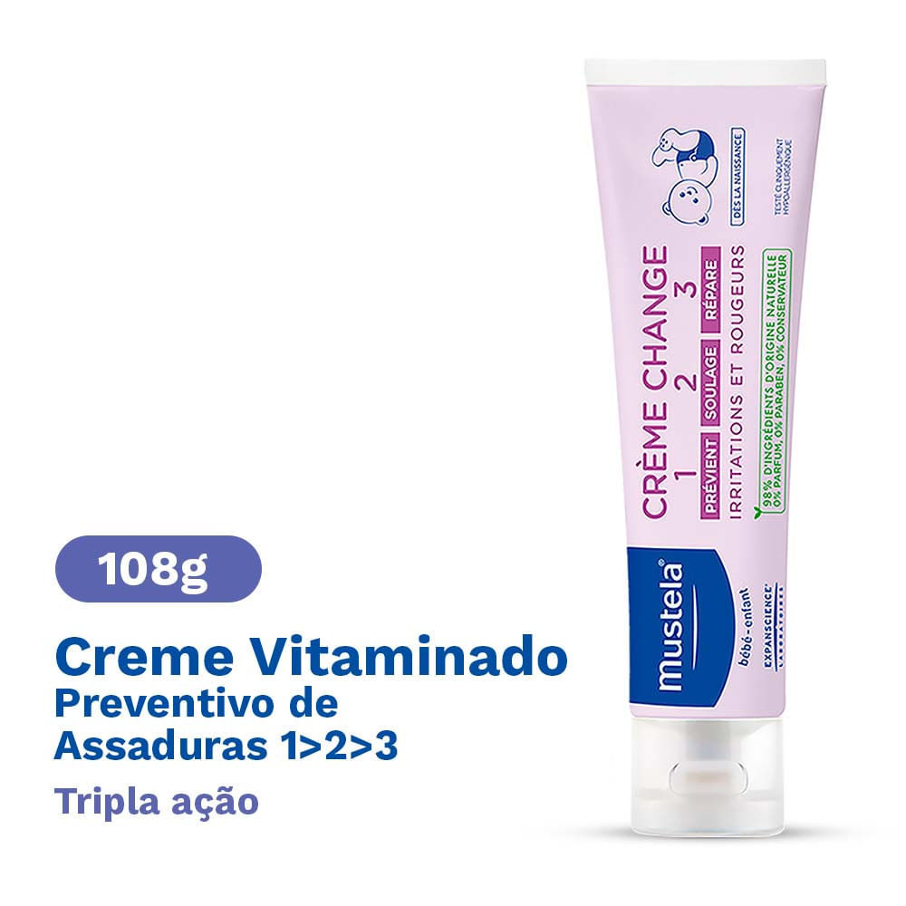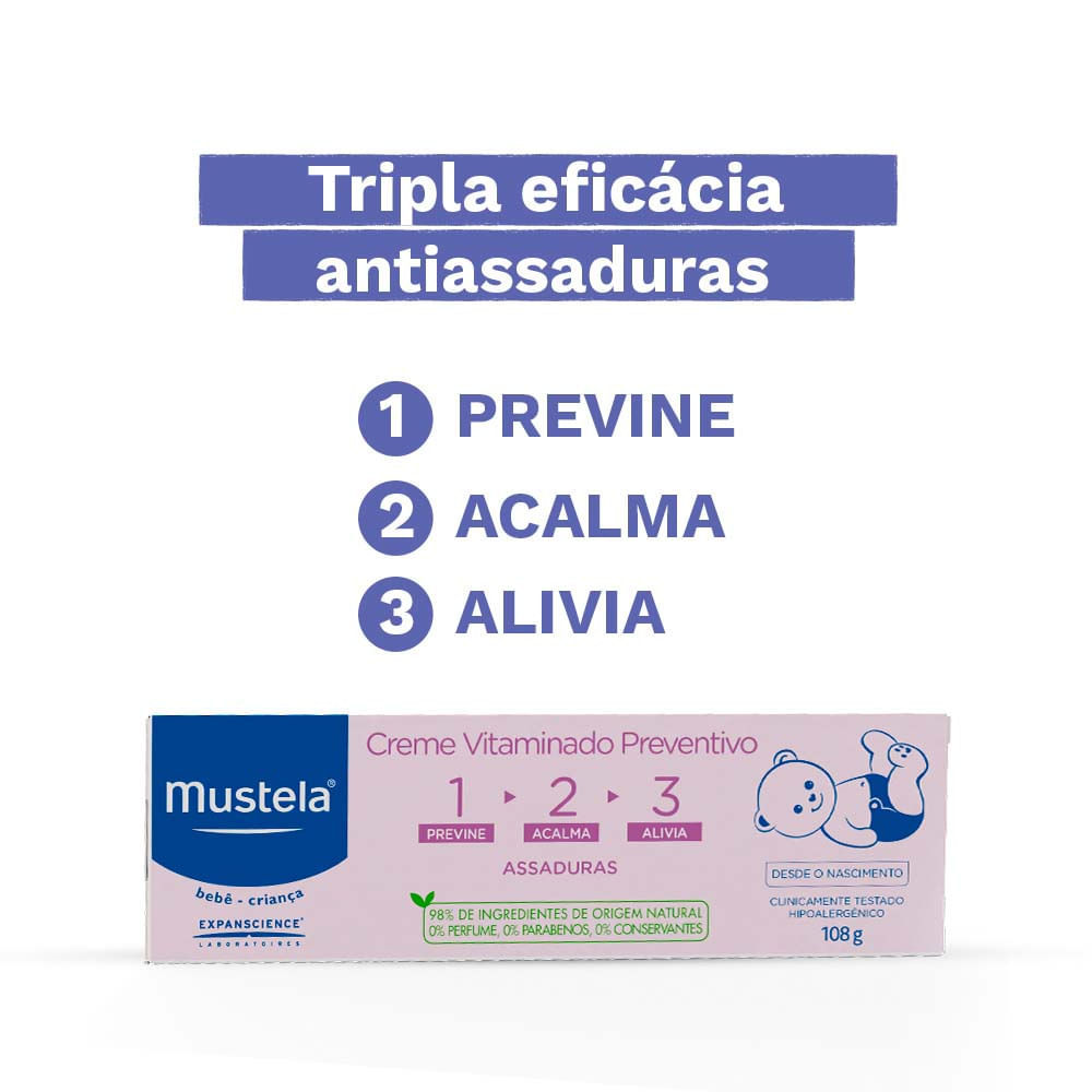 Creme Mustela Vitaminado Preventivo de Assaduras Tripla Ação 108g